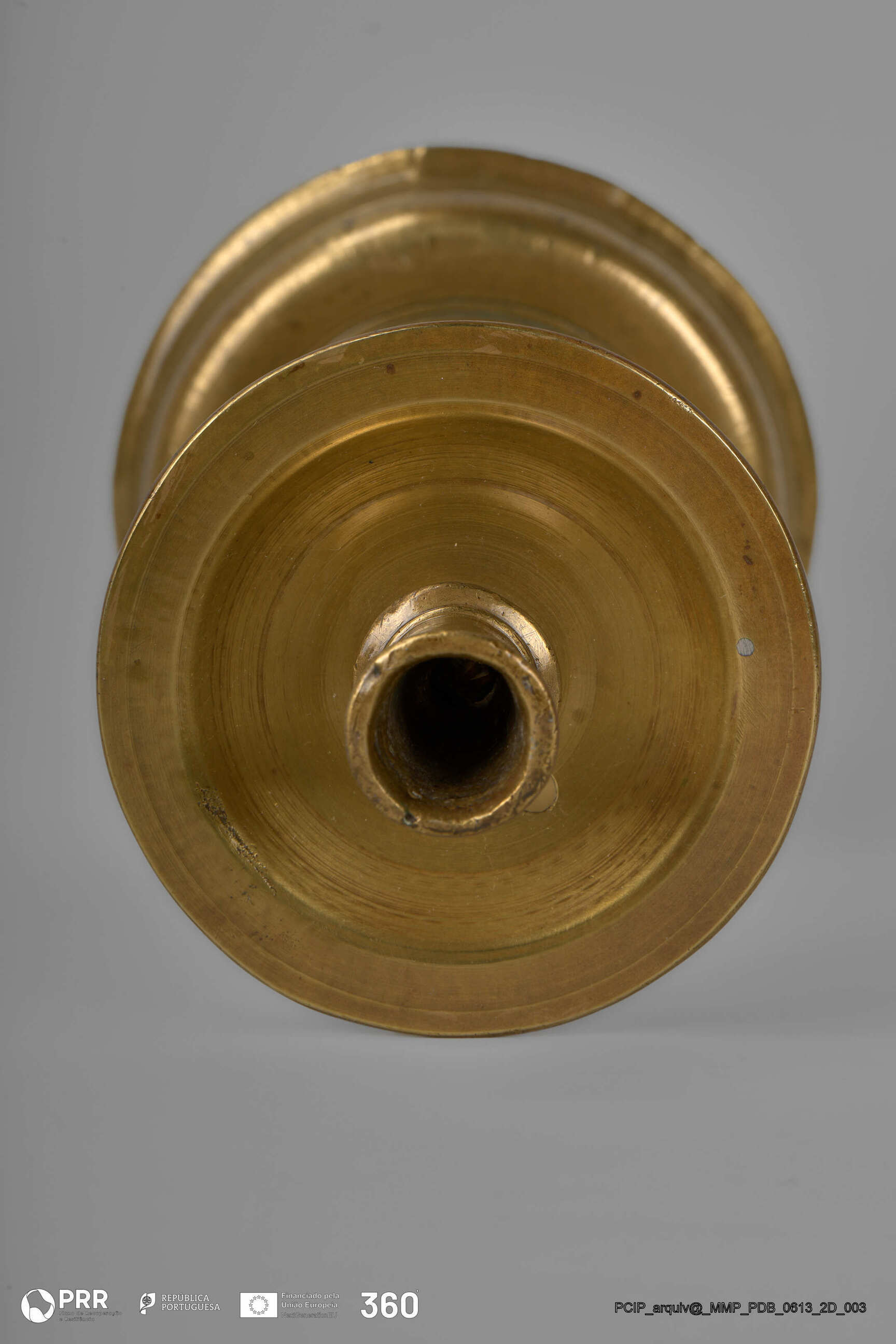 Matéria/Técnica: Desconhecida; Cronologia: Século XVII; Autoria: Desconhecida; Dimensões (cm): Altura: 27,3; Diâmetro: Base - 12,8.