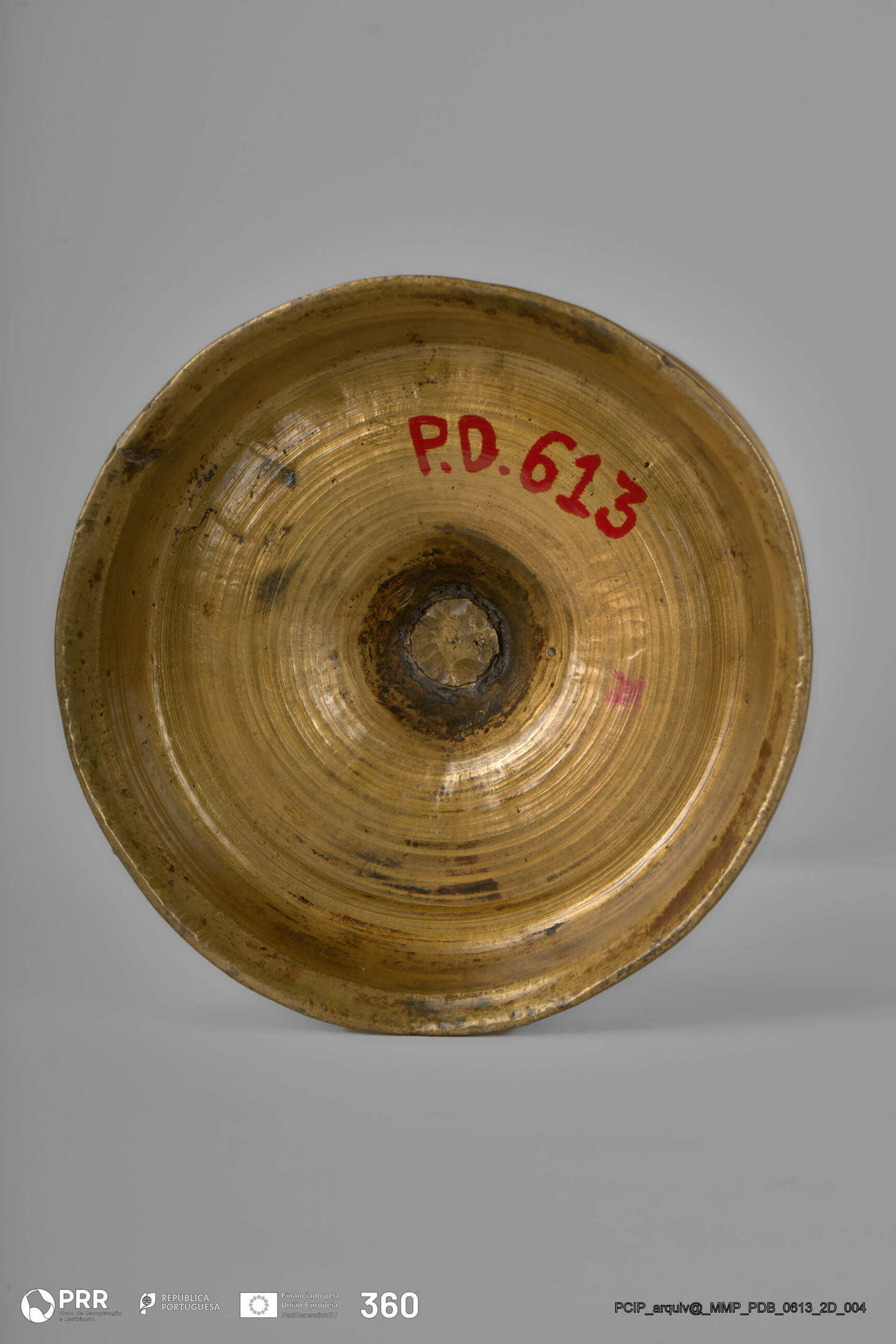 Matéria/Técnica: Desconhecida; Cronologia: Século XVII; Autoria: Desconhecida; Dimensões (cm): Altura: 27,3; Diâmetro: Base - 12,8.