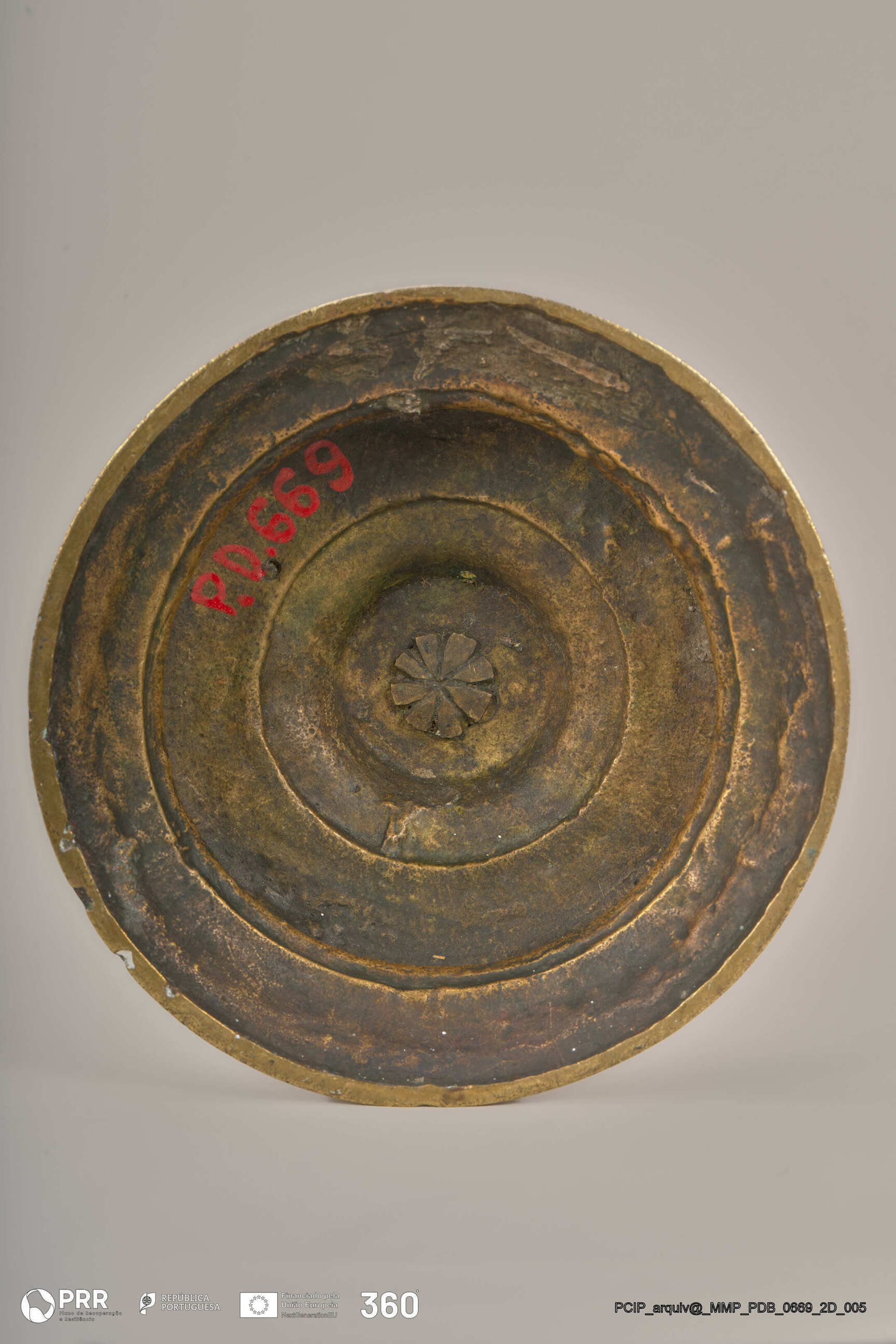 Matéria/Técnica: Desconhecida; Cronologia: Século XVII; Autoria: Desconhecida; Dimensões (cm): Altura: 37,7; Diâmetro: Base - 14,7.