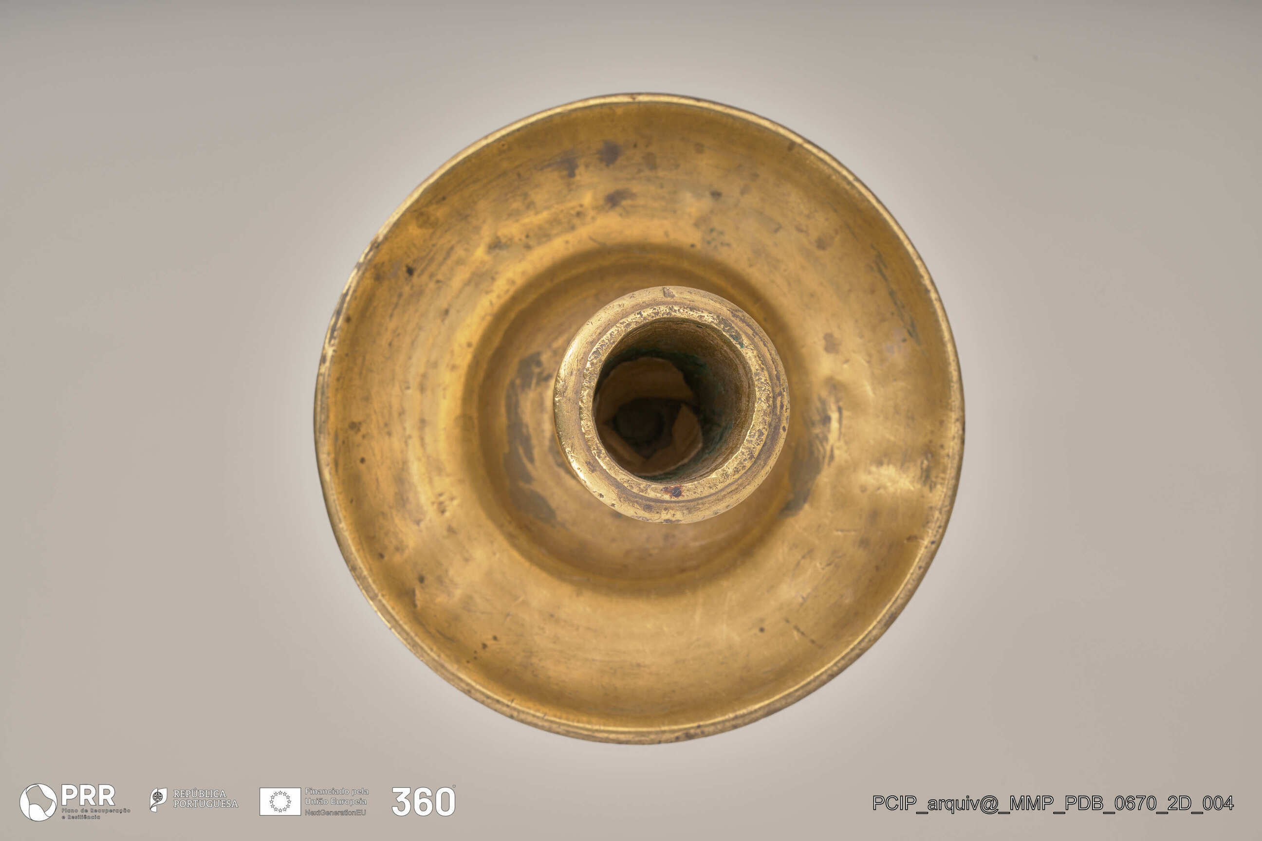 Matéria/Técnica: Desconhecida; Cronologia: Século XVII; Autoria: Desconhecida; Dimensões (cm): Altura: 37,7; Diâmetro: Base - 14,7 Vela - 2,5.