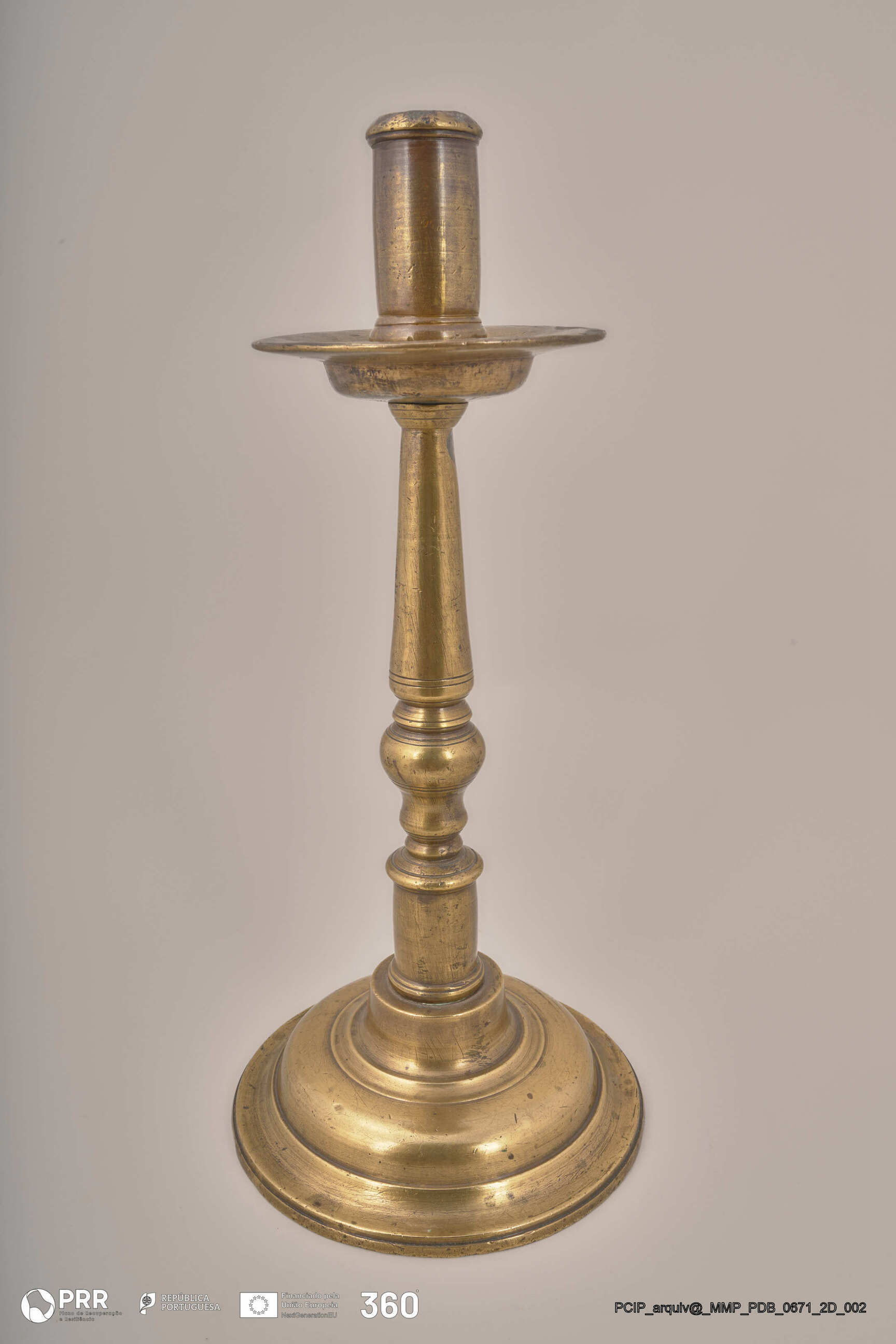 Matéria/Técnica: Desconhecida; Cronologia: Século XVII; Autoria: Desconhecida; Dimensões (cm): Altura: 34,2; Diâmetro: Base - 15,5.
