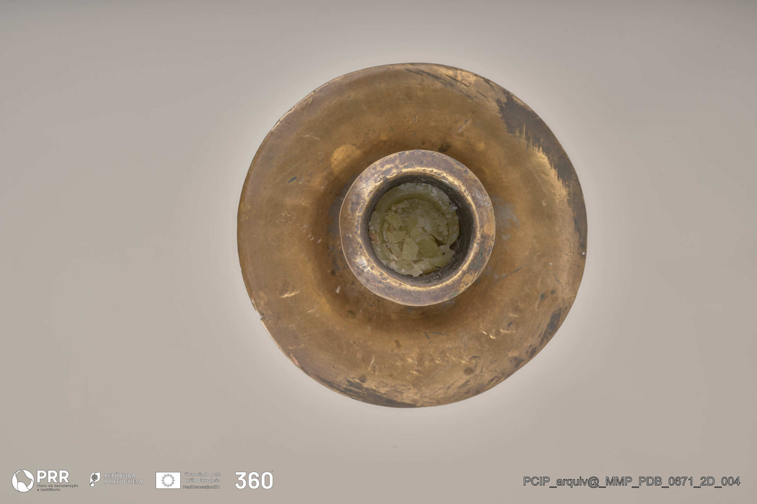 Matéria/Técnica: Desconhecida; Cronologia: Século XVII; Autoria: Desconhecida; Dimensões (cm): Altura: 34,2; Diâmetro: Base - 15,5.