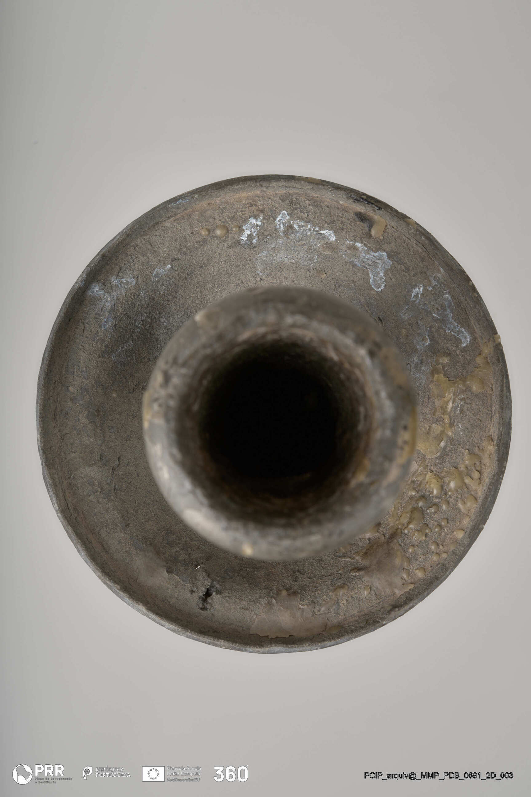 Matéria/Técnica: Desconhecida; Cronologia: Século XVII; Autoria: Desconhecida; Dimensões (cm): Altura: 41,5; Diâmetro: Base - 13,7 Vela - 2,4.