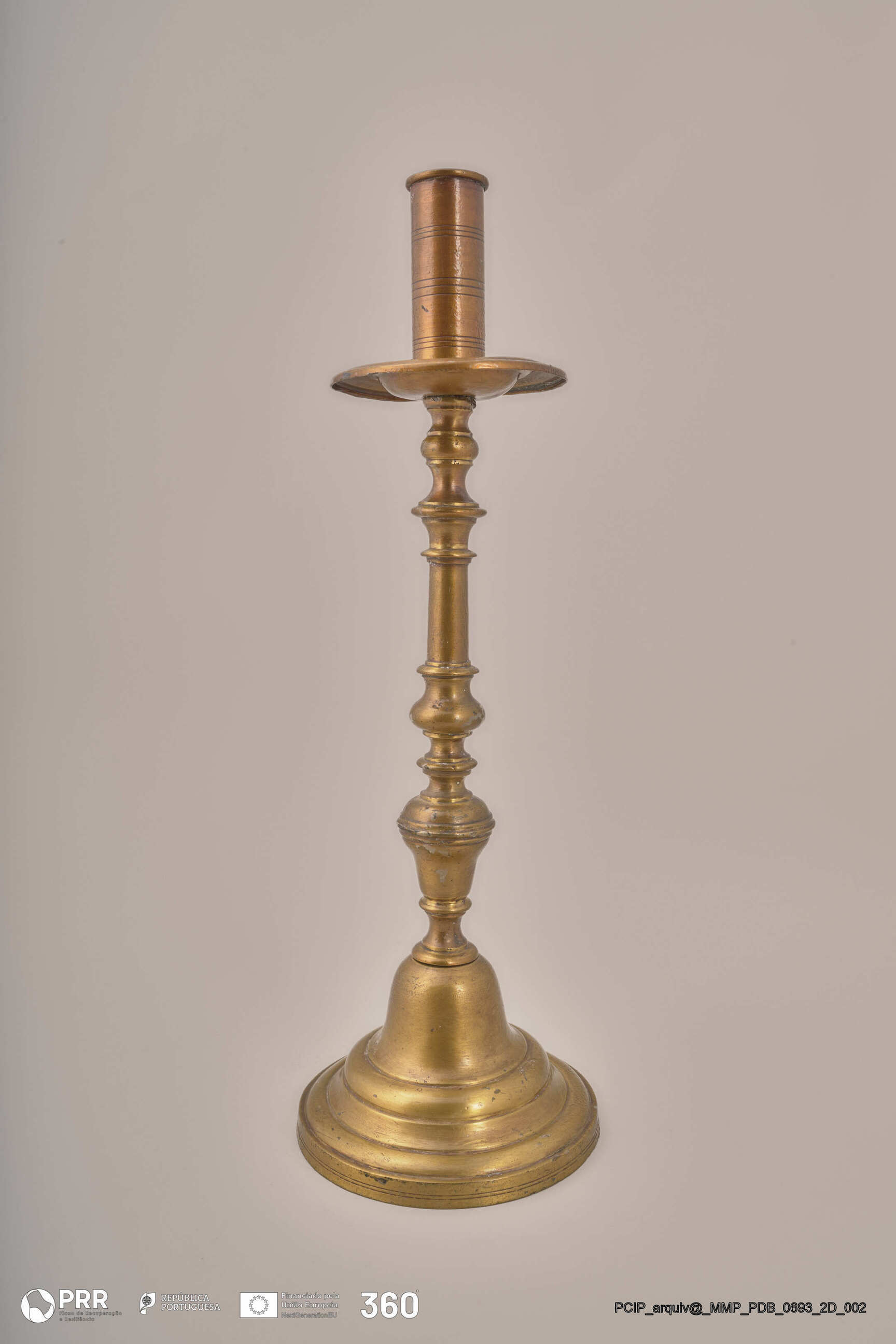 Matéria/Técnica: Desconhecida; Cronologia: Século XVIII; Autoria: Desconhecida; Dimensões (cm): Altura: 36; Diâmetro: Base - 12 Vela - 2,2.