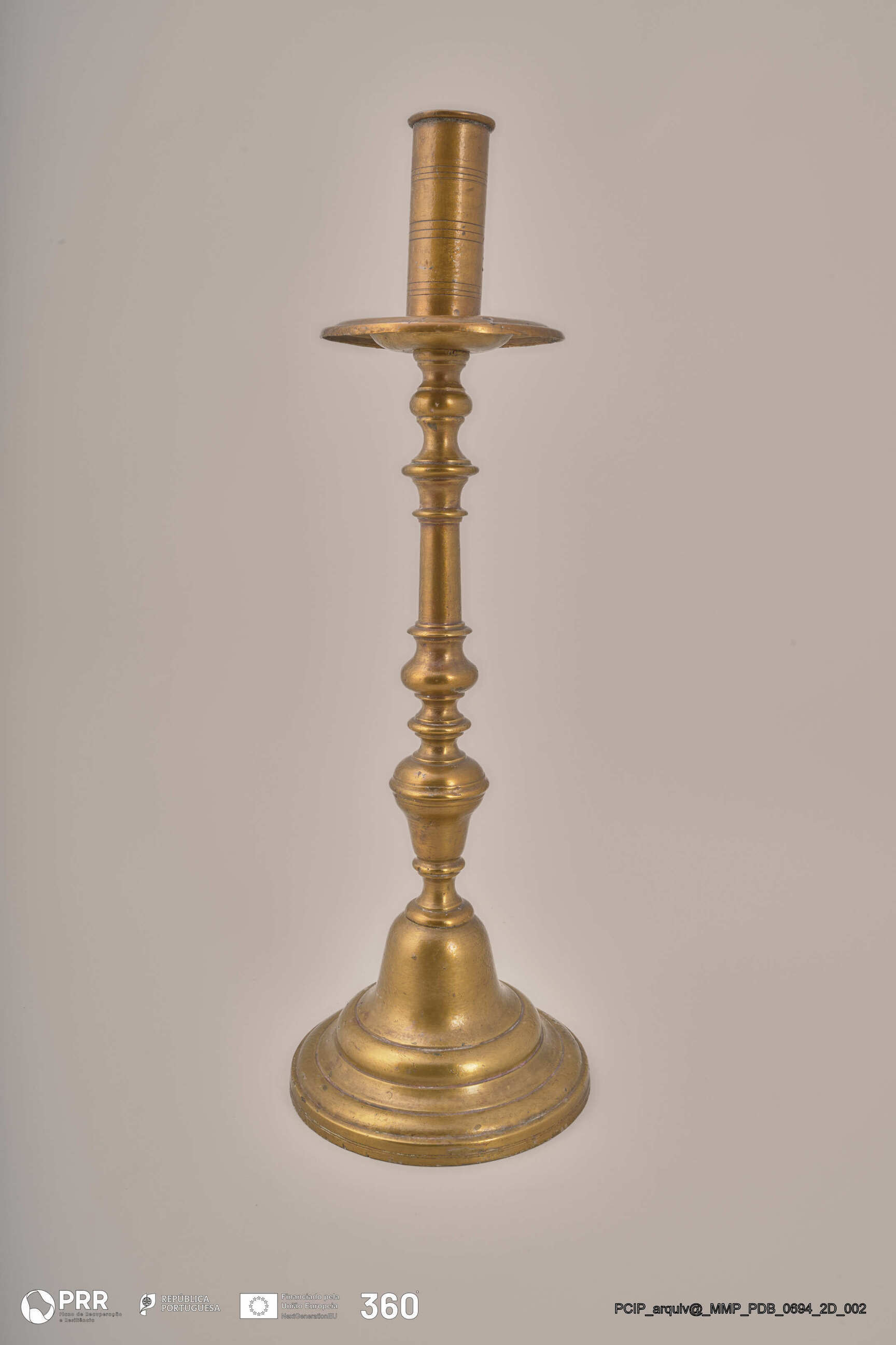 Matéria/Técnica: Desconhecida; Cronologia: Século XVIII; Autoria: Desconhecida; Dimensões (cm): Altura: 36; Diâmetro: Base - 12 Vela - 2,2.