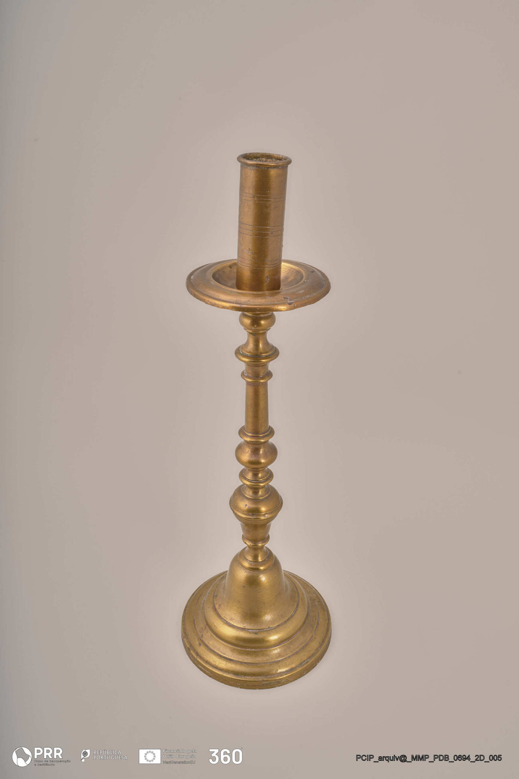 Matéria/Técnica: Desconhecida; Cronologia: Século XVIII; Autoria: Desconhecida; Dimensões (cm): Altura: 36; Diâmetro: Base - 12 Vela - 2,2.
