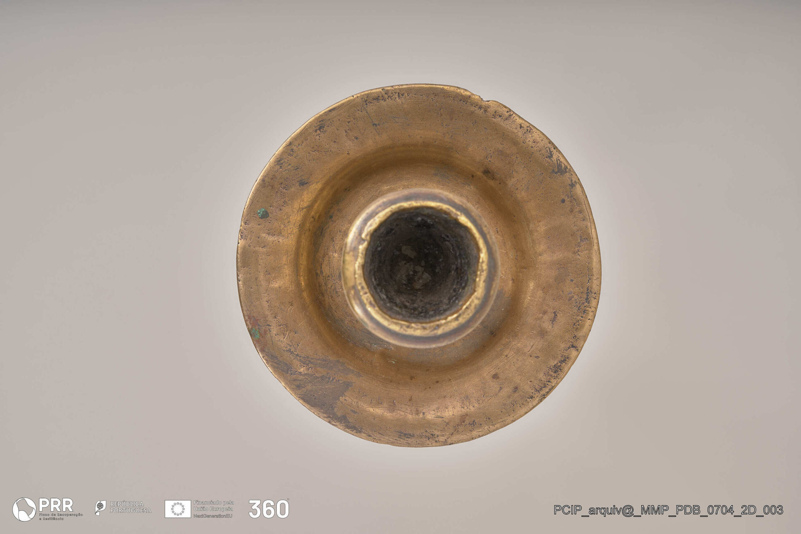 Matéria/Técnica: Desconhecida; Cronologia: Século XVII; Autoria: Desconhecida; Dimensões (cm): Altura: 33; Diâmetro: Base - 13,5.