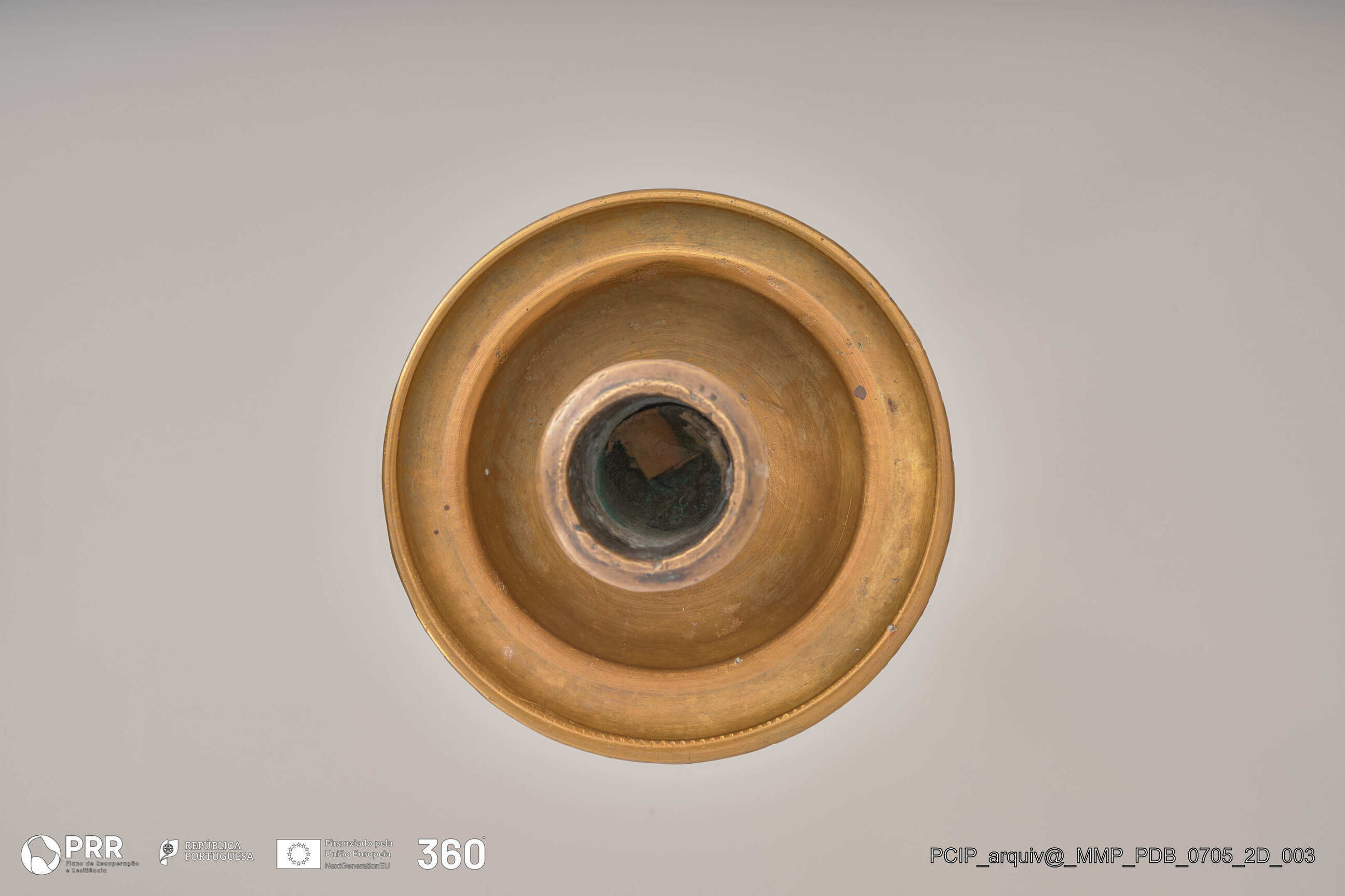Matéria/Técnica: Desconhecida; Cronologia: Século XVII; Autoria: Desconhecida; Dimensões (cm): Altura: 40; Diâmetro: Base - 15,6 Vela - 2,6.