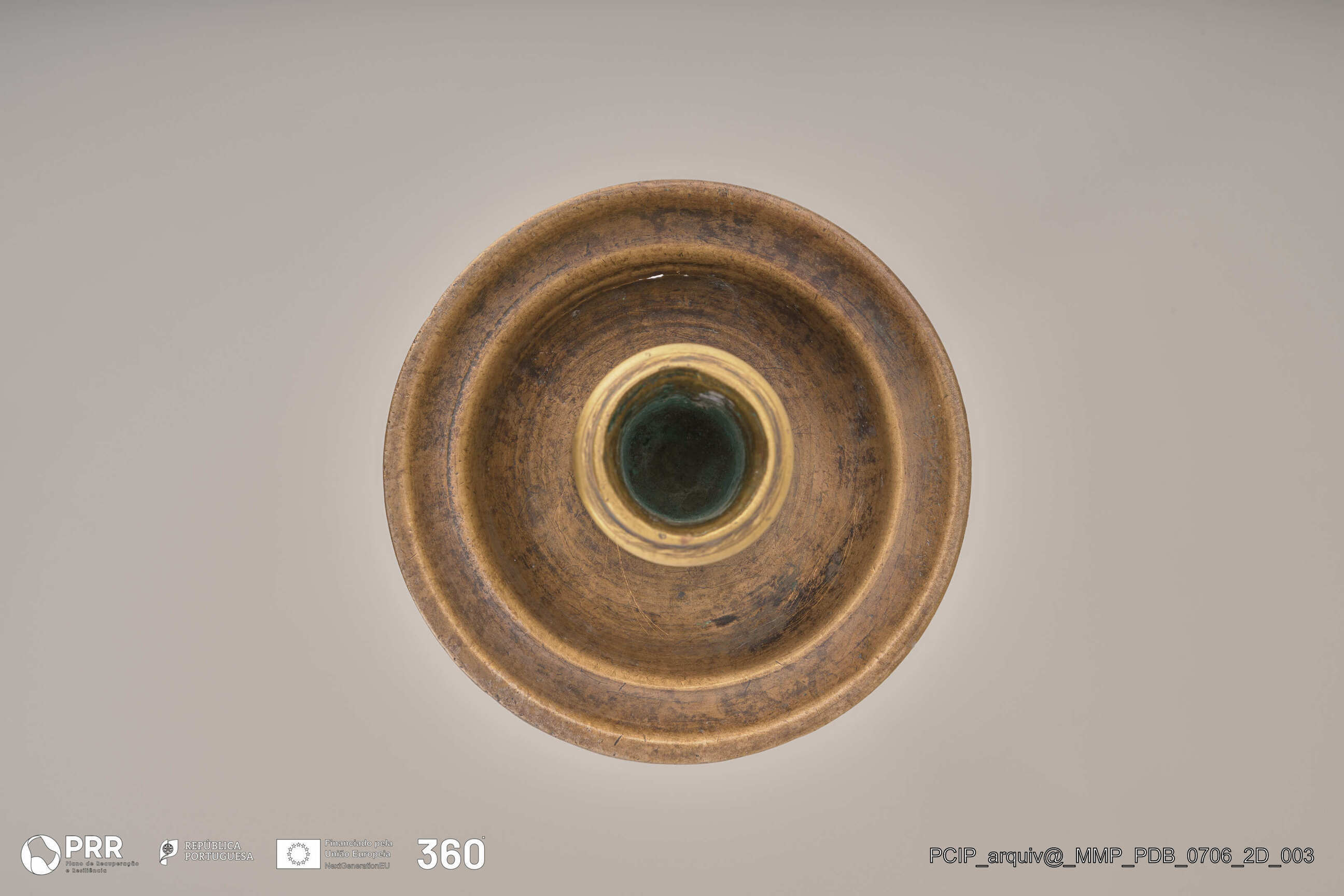 Matéria/Técnica: Desconhecida; Cronologia: Século XVII; Autoria: Desconhecida; Dimensões (cm): Altura: 40; Diâmetro: Base - 15,6 Vela - 2,6.