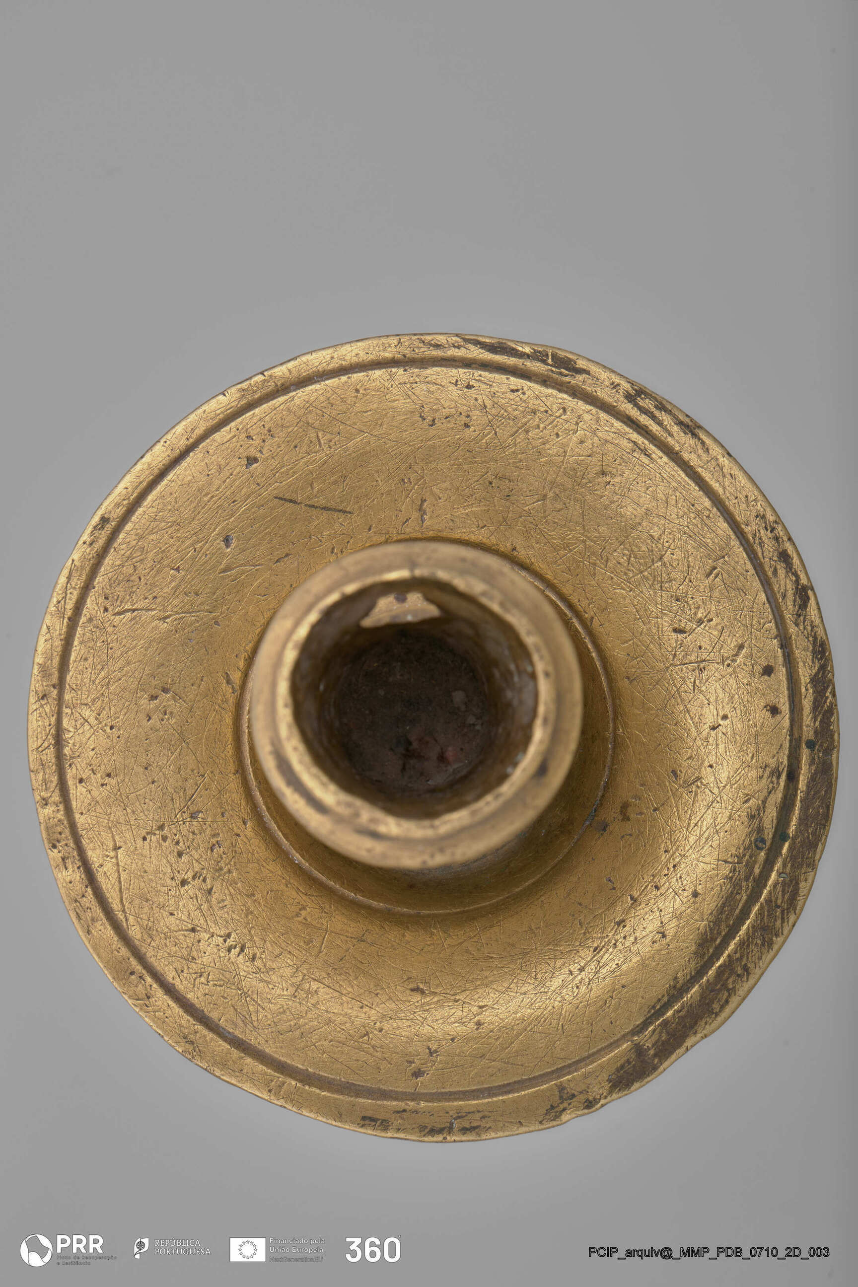 Matéria/Técnica: Desconhecida; Cronologia: Século XVII; Autoria: Desconhecida; Dimensões (cm): Altura: 24,8; Diâmetro: Base - 12,5.