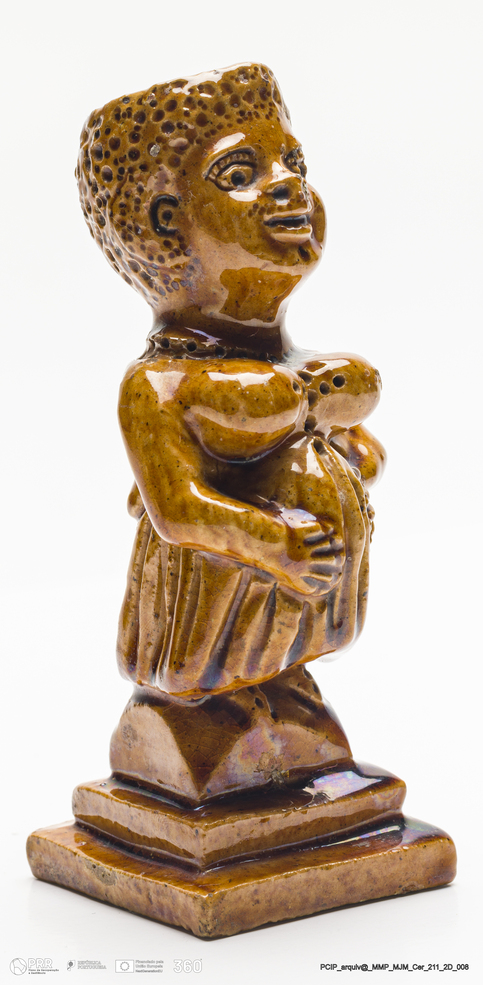Matéria/Técnica: Barro vidrado; Cronologia: Desconhecida; Autoria: Sem marca; Dimensões: Comprimento: 5 x Altura: 12,8 x Largura: 5,1 cm.