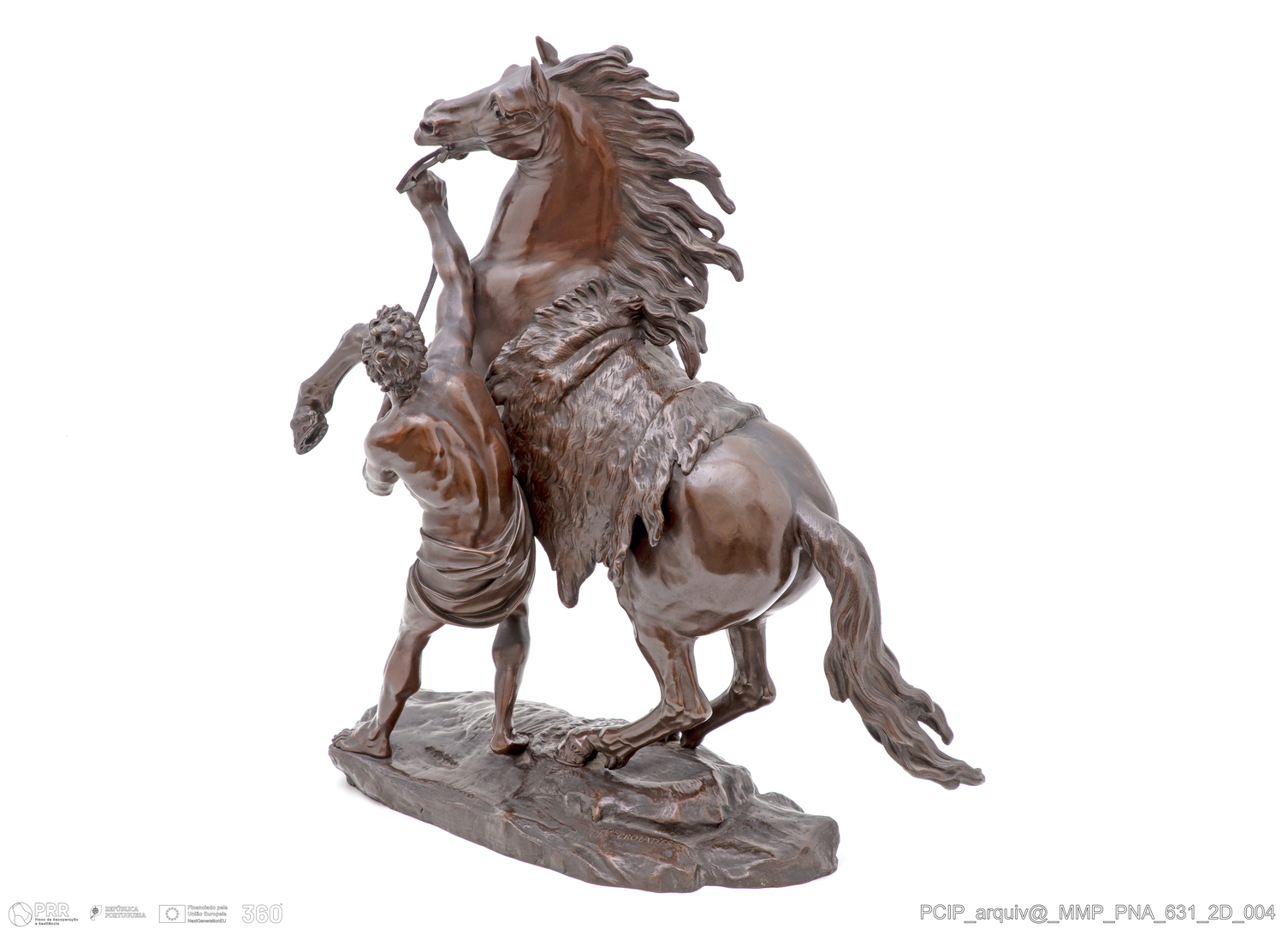 Matéria/Técnica: Bronze; Cronologia: Século XIX; Autoria: Marly, Chateau (atribuível); Dimensões (cm): Altura: 57 cm; Largura: 56 cm.