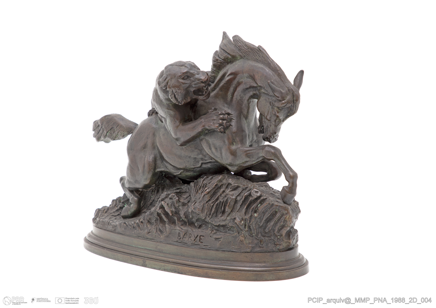 Matéria/Técnica: Bronze; Cronologia: 1850 - 1875; Autoria: Barye, Antoine-Louis (1795-1875); Dimensões (cm): Altura: 27,7 cm; Largura: 15,5 cm; Profundidade: 33,8 cm.