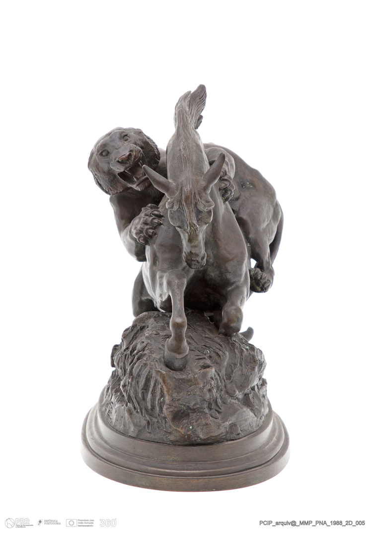 Matéria/Técnica: Bronze; Cronologia: 1850 - 1875; Autoria: Barye, Antoine-Louis (1795-1875); Dimensões (cm): Altura: 27,7 cm; Largura: 15,5 cm; Profundidade: 33,8 cm.