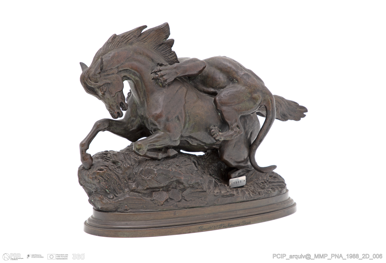 Matéria/Técnica: Bronze; Cronologia: 1850 - 1875; Autoria: Barye, Antoine-Louis (1795-1875); Dimensões (cm): Altura: 27,7 cm; Largura: 15,5 cm; Profundidade: 33,8 cm.