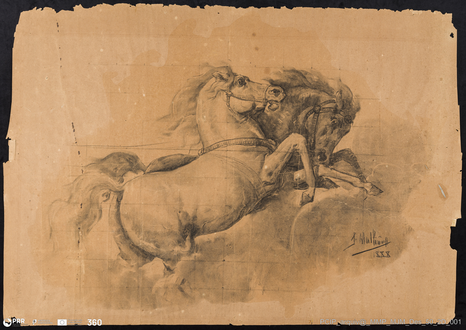 Matéria/Técnica: Carvão sobre papel; Cronologia: 1888; Autoria: José Malhoa; Dimensões: 62 x 94 cm.