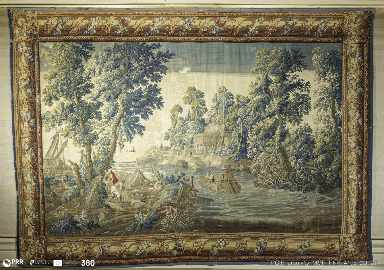 Matéria/Técnica: Tapeçaria de liço; Cronologia: Século XVIII; Autoria: Jean-Joseph Dumons; Jeaucour, Michel; Picon, Jean-François; Dimensões: Altura: 486 cm x Largura: 679 cm.