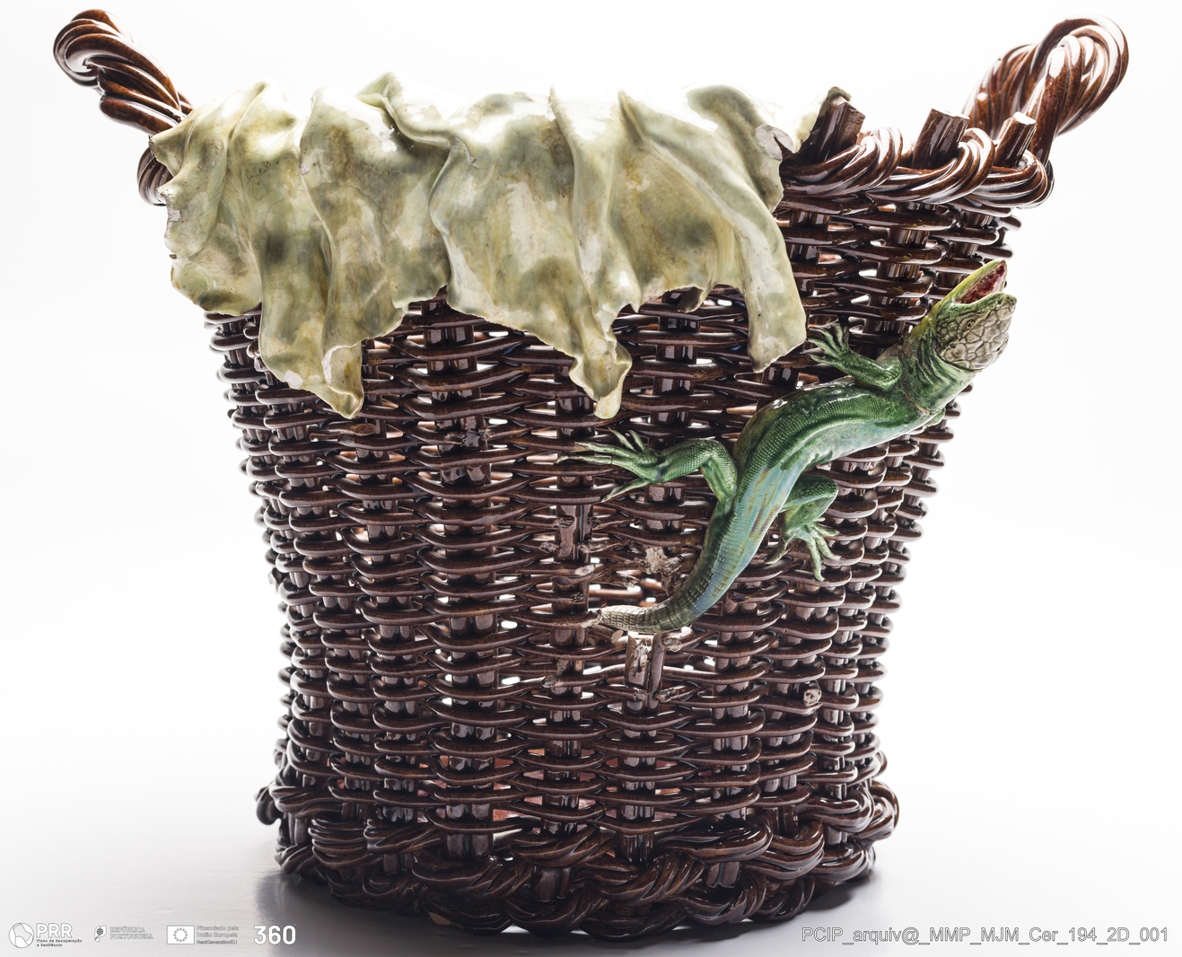 Matéria/Técnica: Barro vidrado; Cronologia: 1900; Autoria: Marca: FFCR; Dimensões: Comprimento: 37 x Altura: 33,6 x Largura: 42 cm.