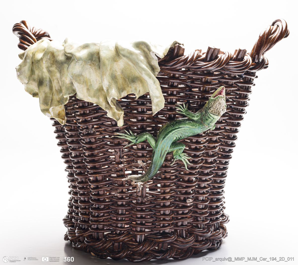 Matéria/Técnica: Barro vidrado; Cronologia: 1900; Autoria: Marca: FFCR; Dimensões: Comprimento: 37 x Altura: 33,6 x Largura: 42 cm.