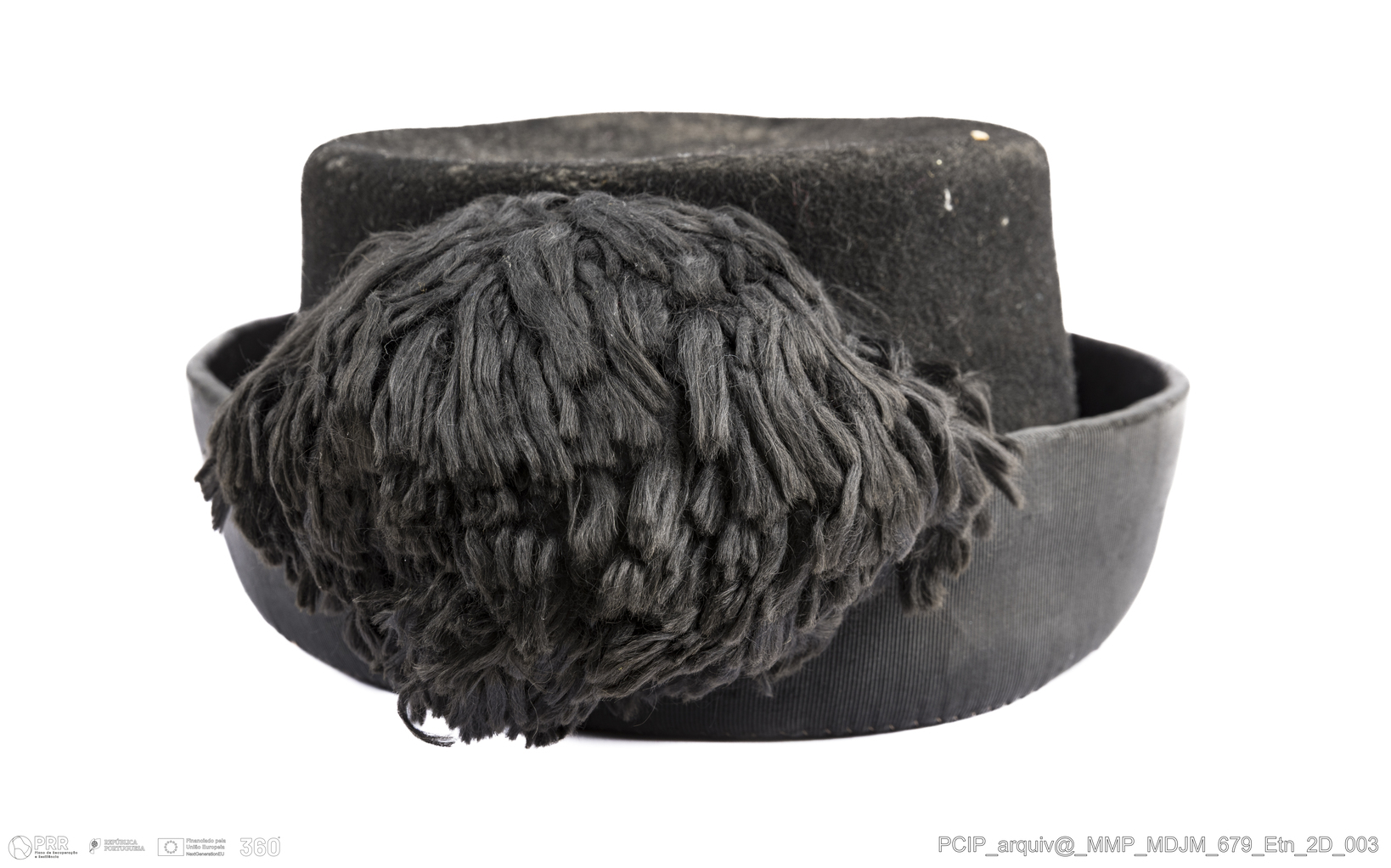 Matéria/Técnica: Feltro preto; Cronologia: Séc. XX; Autoria: Desconhecida; Dimensões: Altura: 40 cm x Largura: 30 cm.