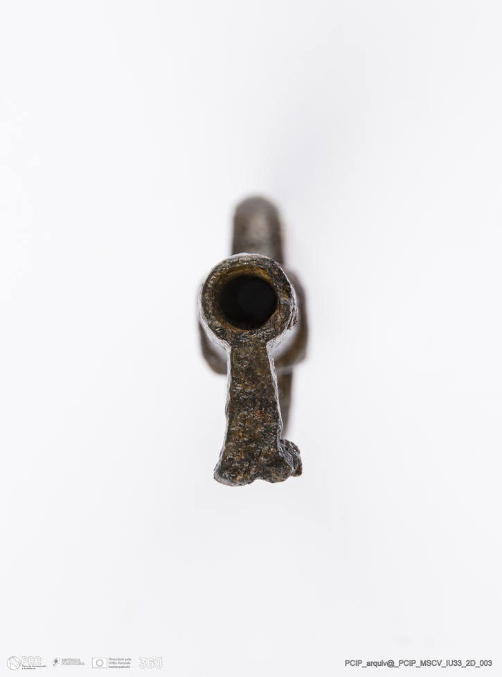 Matéria/Técnica: Ferro; Cronologia: Século XVII; Autoria: Desconhecida; Dimensões: Altura: 54mm; Diâmetro haste: 22mm; Largura: 24mm; Espessura: 9mm.