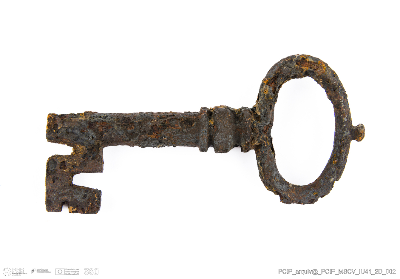 Matéria/Técnica: Ferro; Cronologia: Século XVII; Autoria: Desconhecida; Dimensões: Altura: 63,5mm; Diâmetro haste: 30mm; Largura: 33mm; Espessura: 9mm.