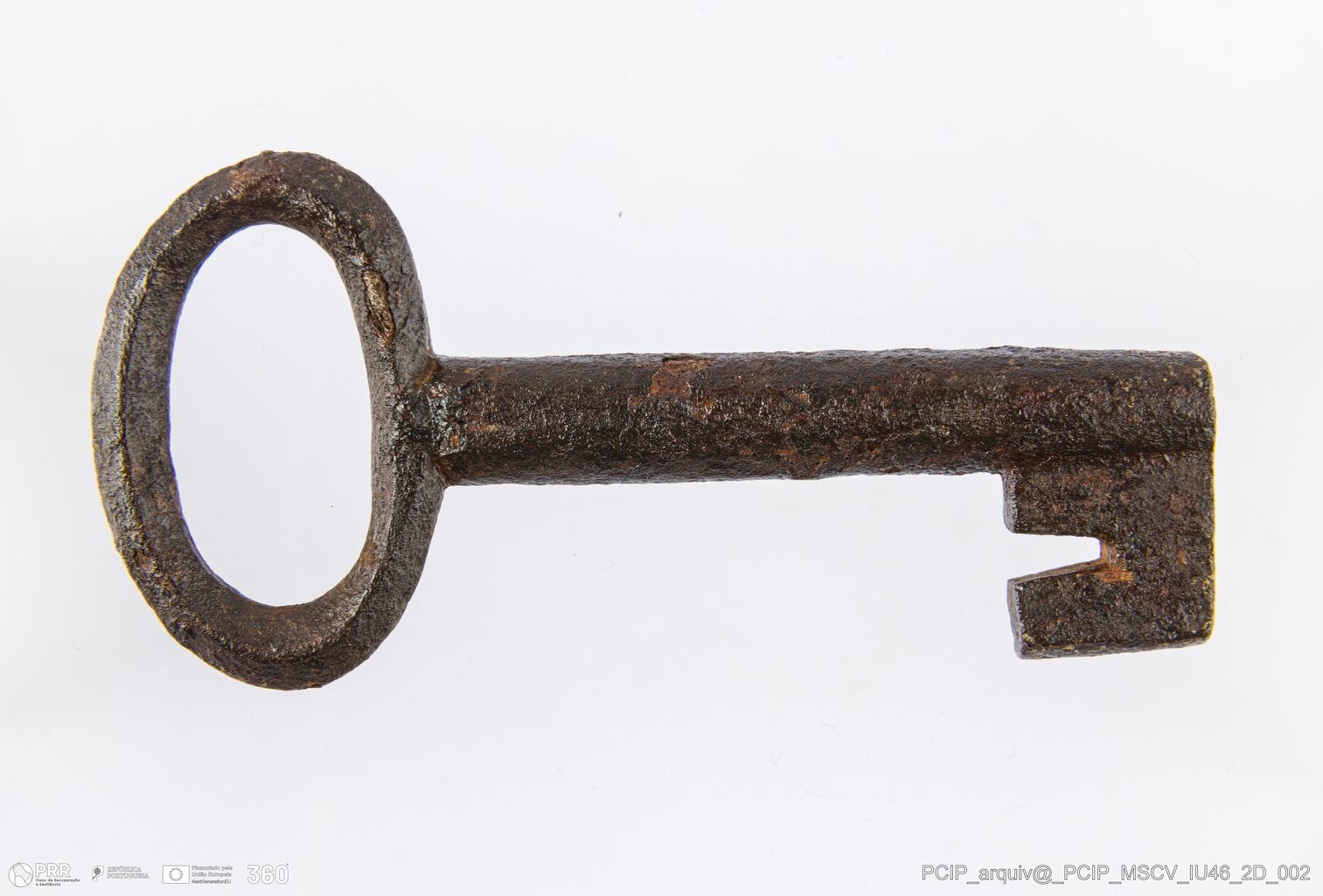 Matéria/Técnica: Ferro; Cronologia: Século XVII; Autoria: Desconhecida; Dimensões: Altura: 78mm; Largura: 37mm; Espessura: 8mm; Diâmetro haste: 37mm.