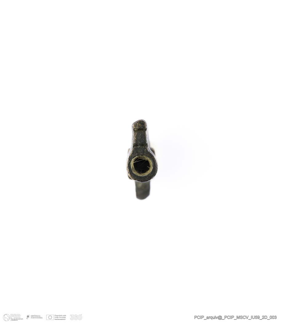 Matéria/Técnica: Prata; Cronologia: Século XVII; Autoria: Desconhecida; Dimensões: Comprimento: 41mm; Largura: 15mm.