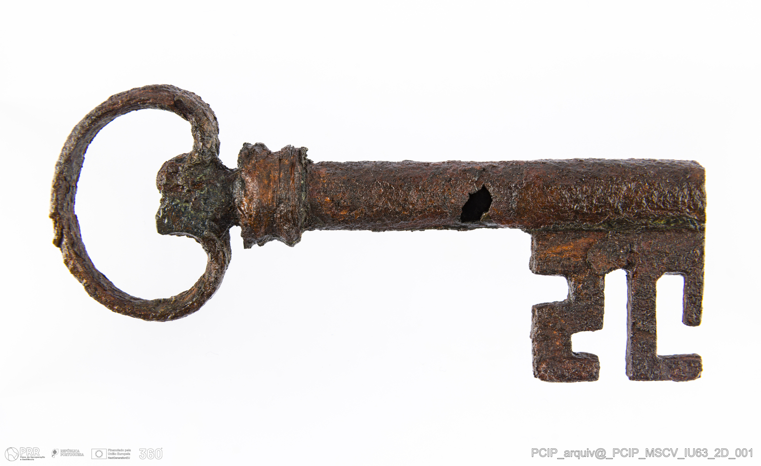 Matéria/Técnica: Ferro; Cronologia: Século XVII; Autoria: Desconhecida; Dimensões: Altura: 8mm; Largura: 35mm; Espessura: 12mm; Diâmetro haste: 28,5mm.