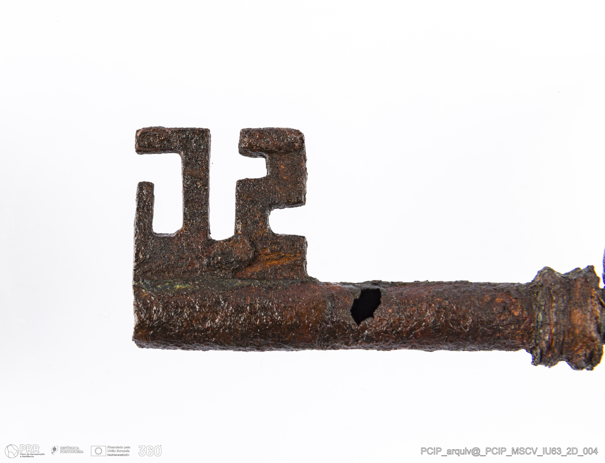 Matéria/Técnica: Ferro; Cronologia: Século XVII; Autoria: Desconhecida; Dimensões: Altura: 8mm; Largura: 35mm; Espessura: 12mm; Diâmetro haste: 28,5mm.
