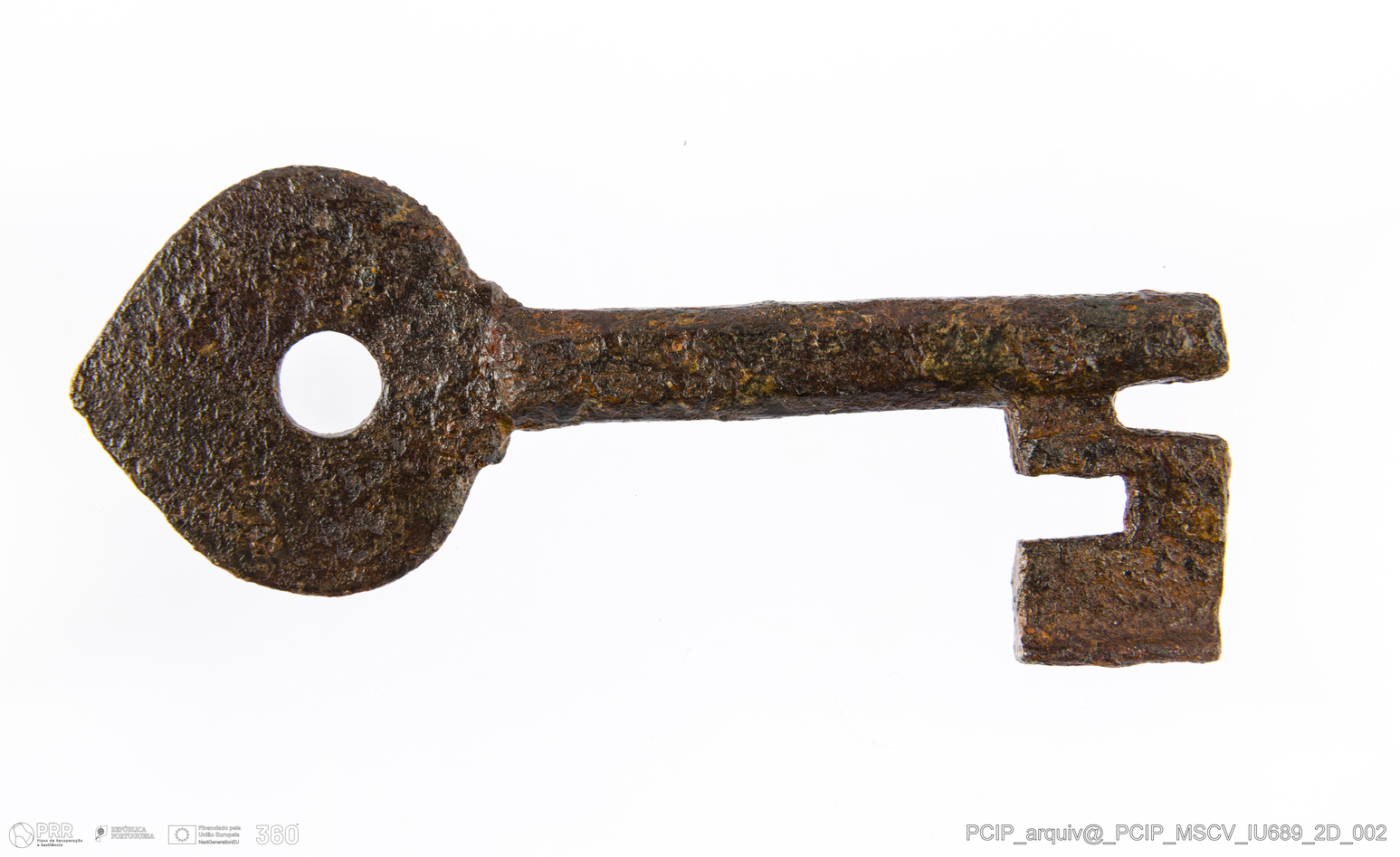 Matéria/Técnica: Ferro; Cronologia: Século XVII; Autoria: Desconhecida; Dimensões: Altura: 78mm; Largura: 34mm; Espessura: 8mm; Diâmetro haste: 28,5mm.