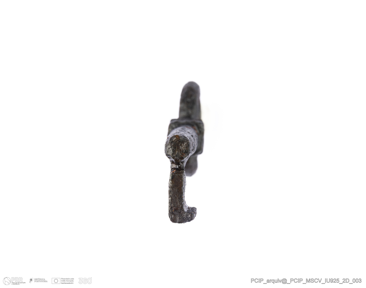 Matéria/Técnica: Ferro; Cronologia: Século XVII; Autoria: Desconhecida; Dimensões: Altura: 45,5mm; Largura: 21,5mm; Espessura: 6,5mm; Diâmetro haste: 18mm.