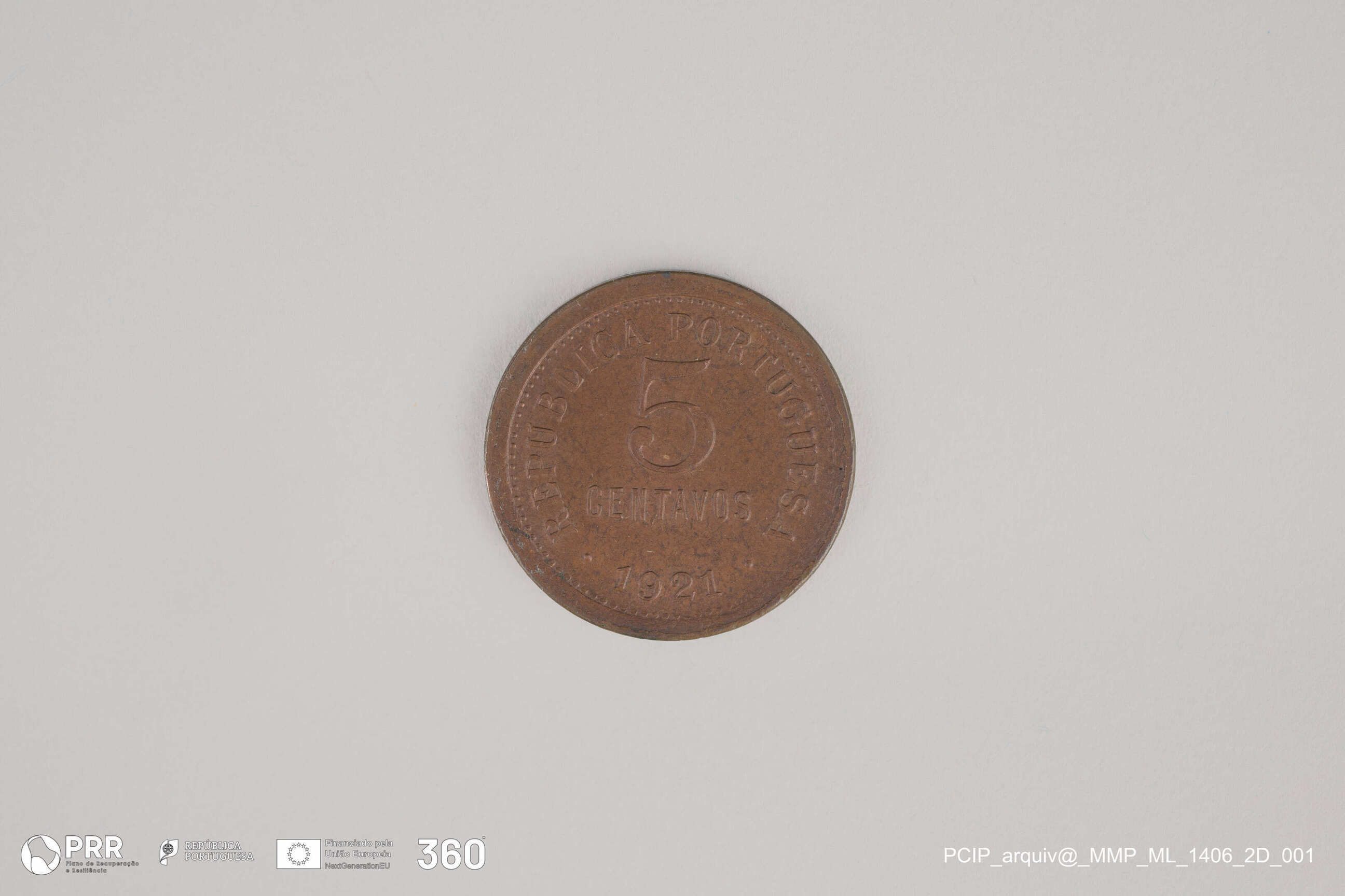 Matéria/Técnica: Cunhagem; Cronologia: 1921; Autoria: Desconhecida; Dimensões (cm): Diâmetro: 2,5.