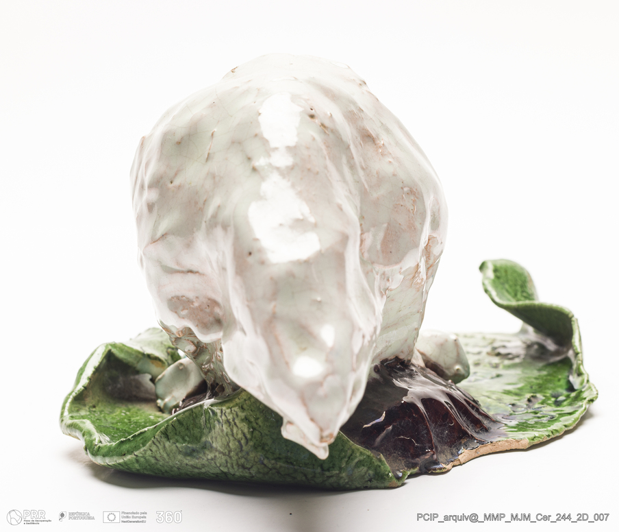 Matéria/Técnica: Barro vidrado; Cronologia: 1911; Autoria: José de Queirós; Dimensões: Comprimento: 19,4 x Altura: 9,2 x Largura: 12,8 cm.