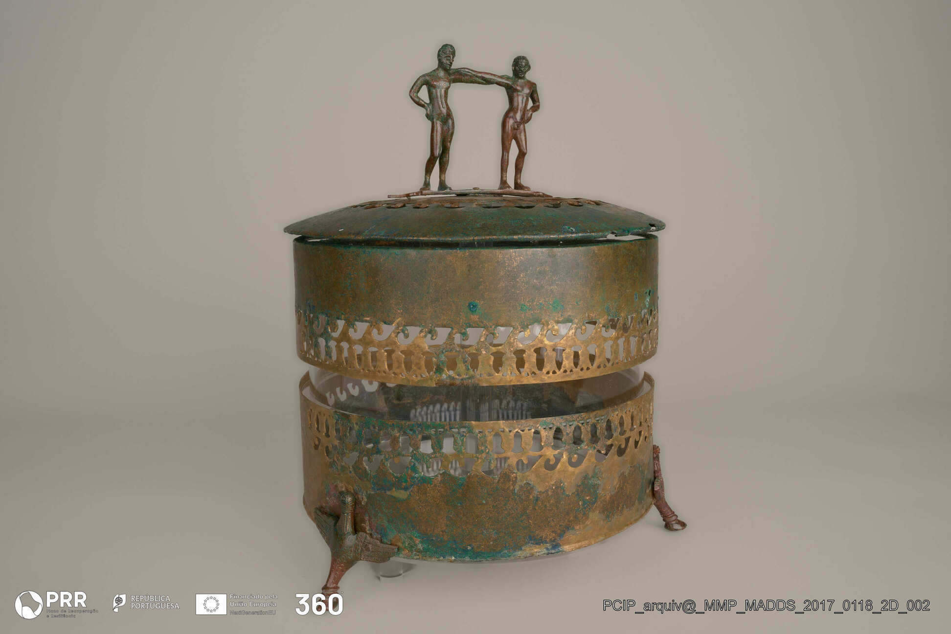 Matéria/Técnica: Bronze; Cronologia: Século IV a.C; Autoria: Desconhecida; Dimensões (cm): 45 x 36 x 36.