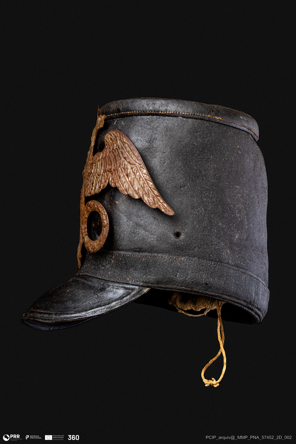 Matéria/Técnica: Couro moldado; metal fundido; Cronologia: Desconhecida; Autoria: Desconhecida; Dimensões: Desconhecidas.