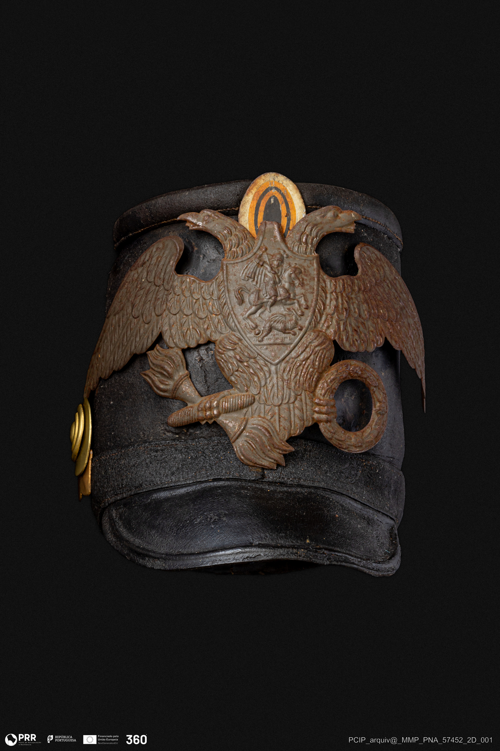 Matéria/Técnica: Couro moldado; metal fundido; Cronologia: Desconhecida; Autoria: Desconhecida; Dimensões: Desconhecidas.