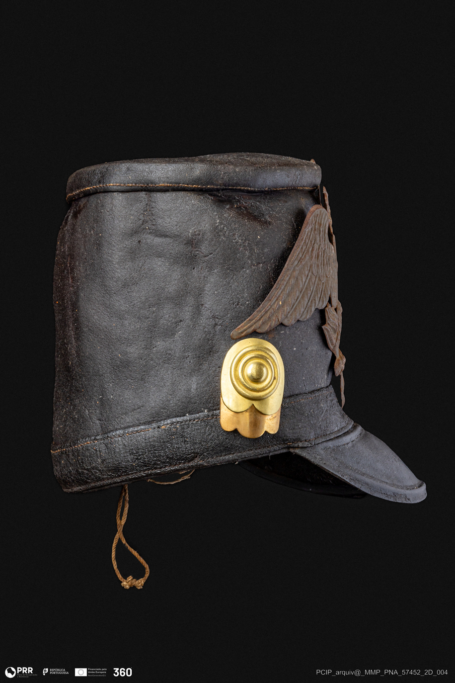 Matéria/Técnica: Couro moldado; metal fundido; Cronologia: Desconhecida; Autoria: Desconhecida; Dimensões: Desconhecidas.