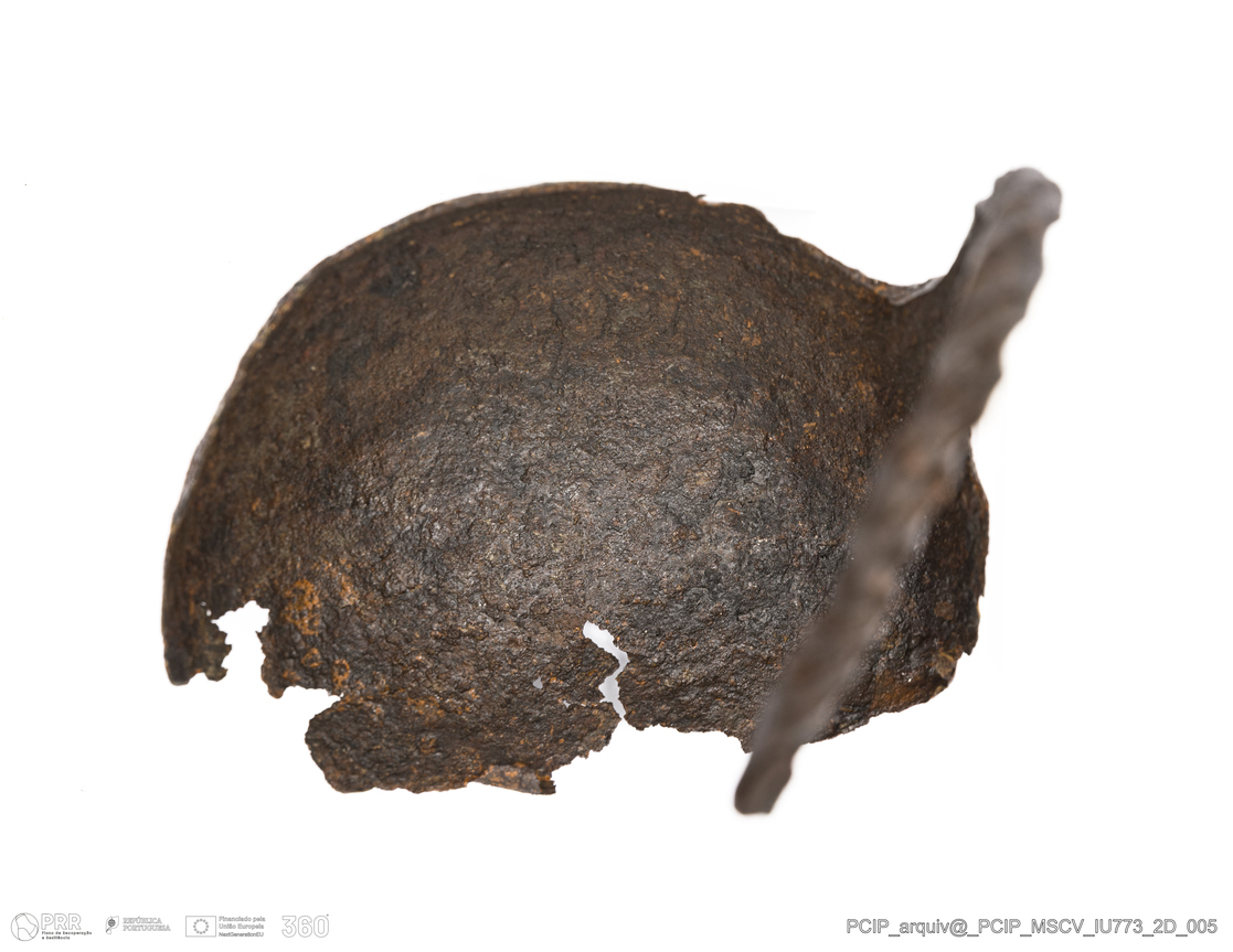 Matéria/Técnica: Metal; Cronologia: Século XVII; Autoria: Desconhecida; Dimensões: Altura: 130mm; Diâmetro: 102mm.
