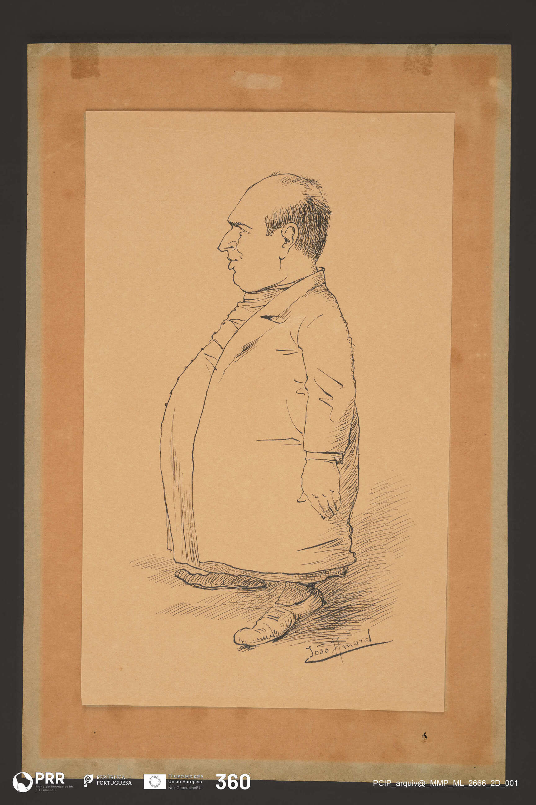 Matéria/Técnica: Desenho à pena; Cronologia: Século XX; Autoria: Amaral, João (1874 - 1955); Dimensões (cm): Altura: 25,4 x Largura: 15,5.