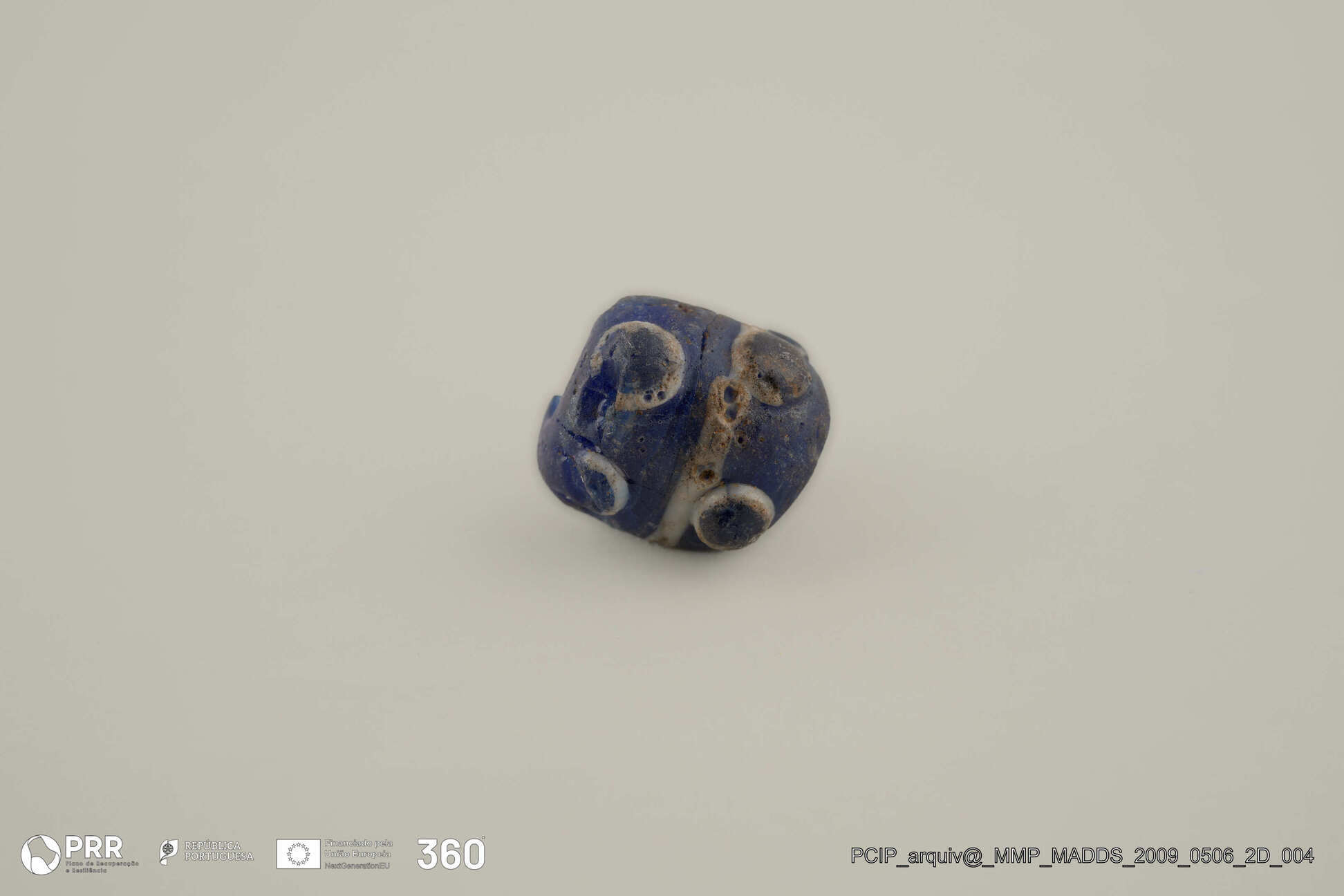 Matéria/Técnica: Vidro; Cronologia: Romano; Autoria: Desconhecida; Dimensões (cm): 1,5 x 1,5 x 0,6.