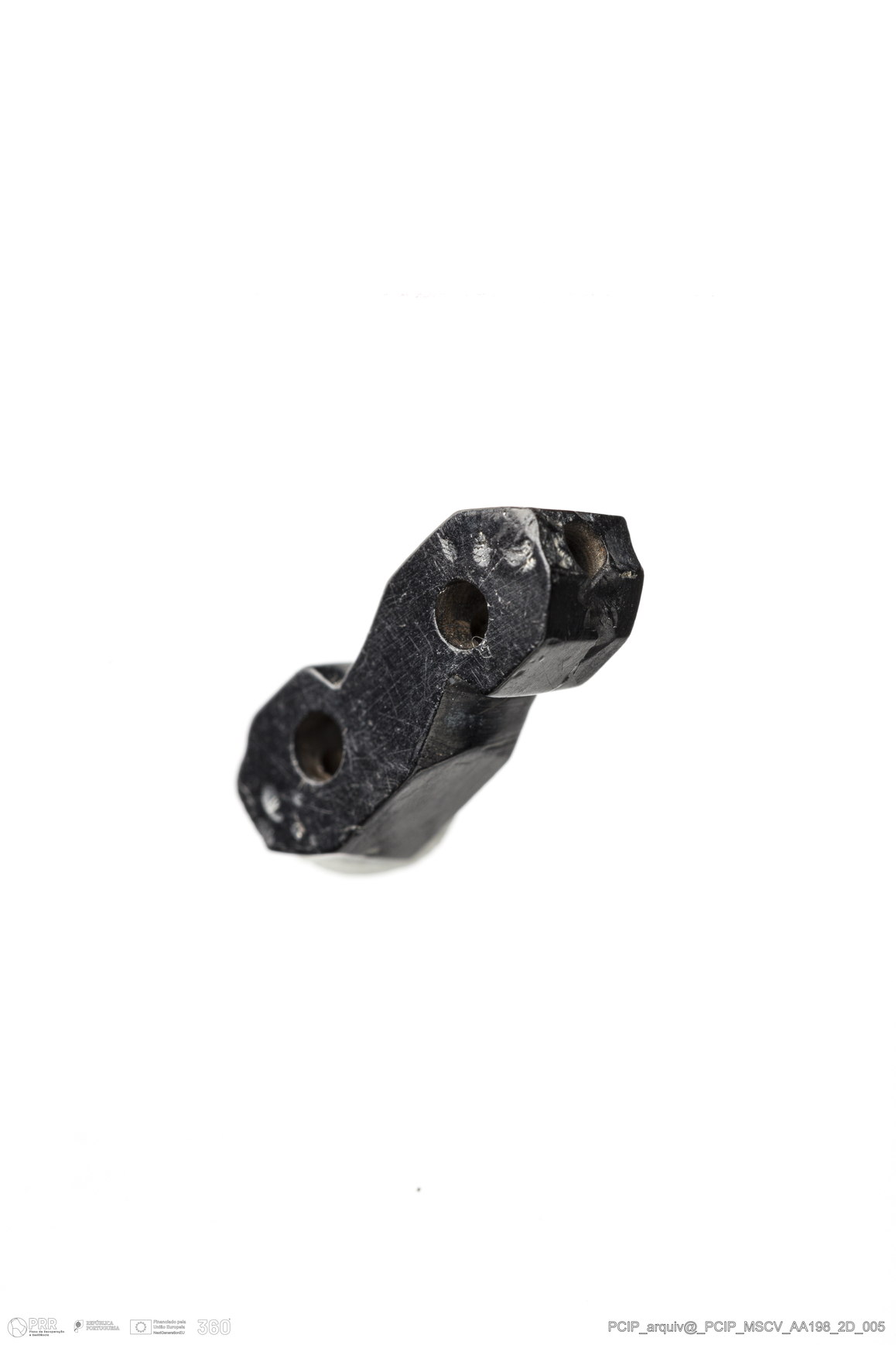 Matéria/Técnica: Azeviche; Cronologia: Século XVI-Século XVII; Autoria: Desconhecida; Dimensões: Comprimento: 18,5mm; Largura: 12mm; Espessura: 12mm.