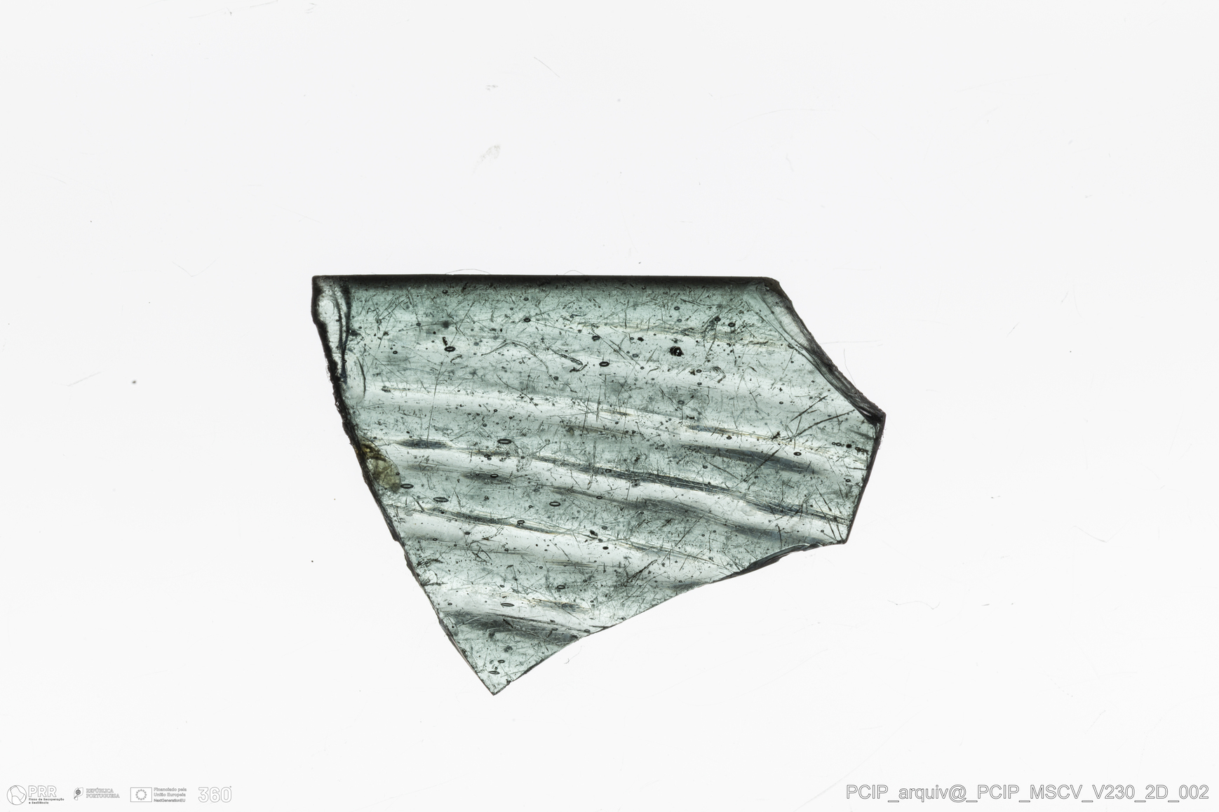 Matéria/Técnica: Vidro; Cronologia: Século XVII; Autoria: Desconhecida; Dimensões: Comprimento: 15mm; Largura: 21mm.