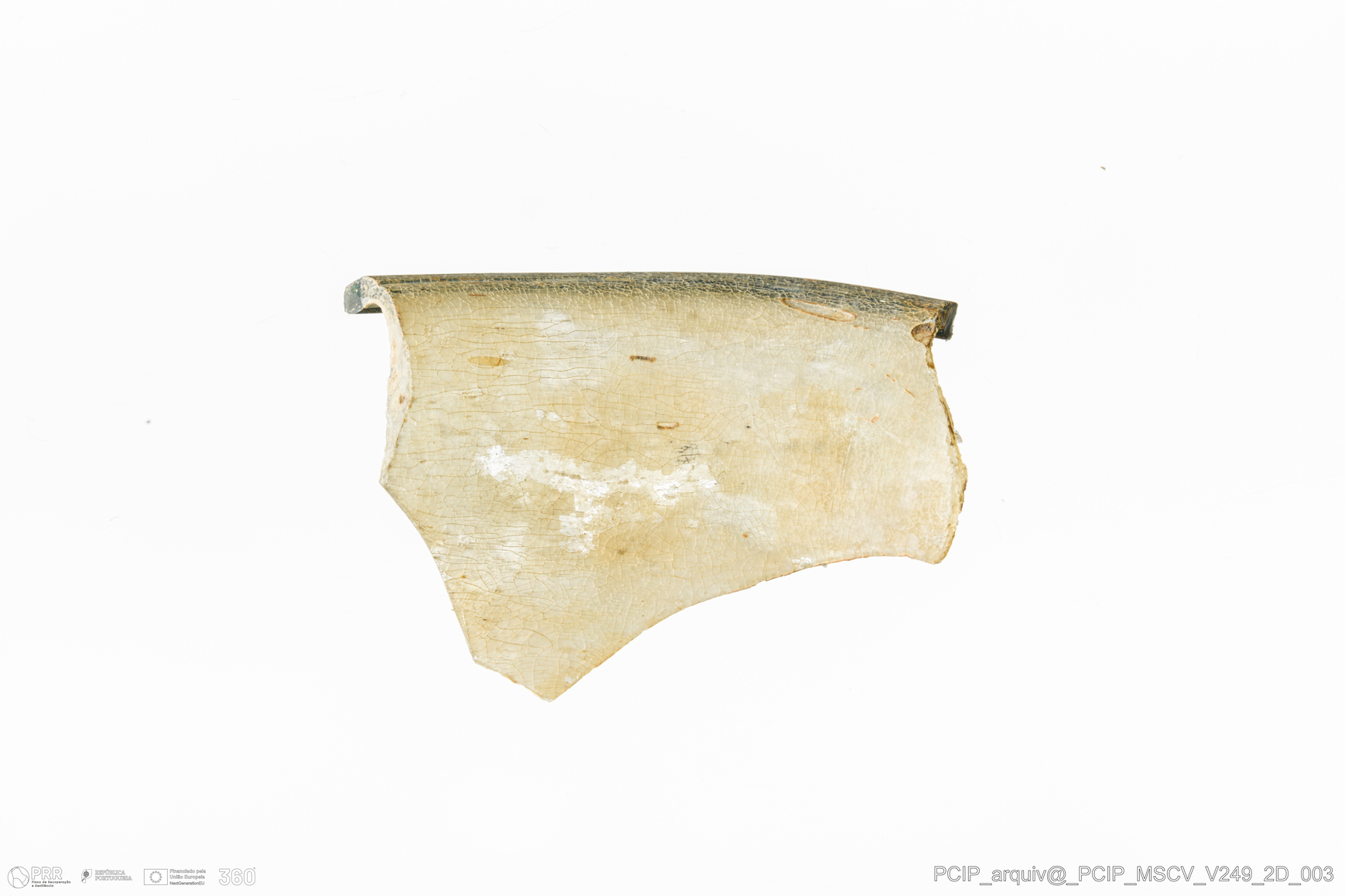 Matéria/Técnica: Vidro; Cronologia: Século XVII; Autoria: Desconhecida; Dimensões: Diâmetro bordo: 90mm.