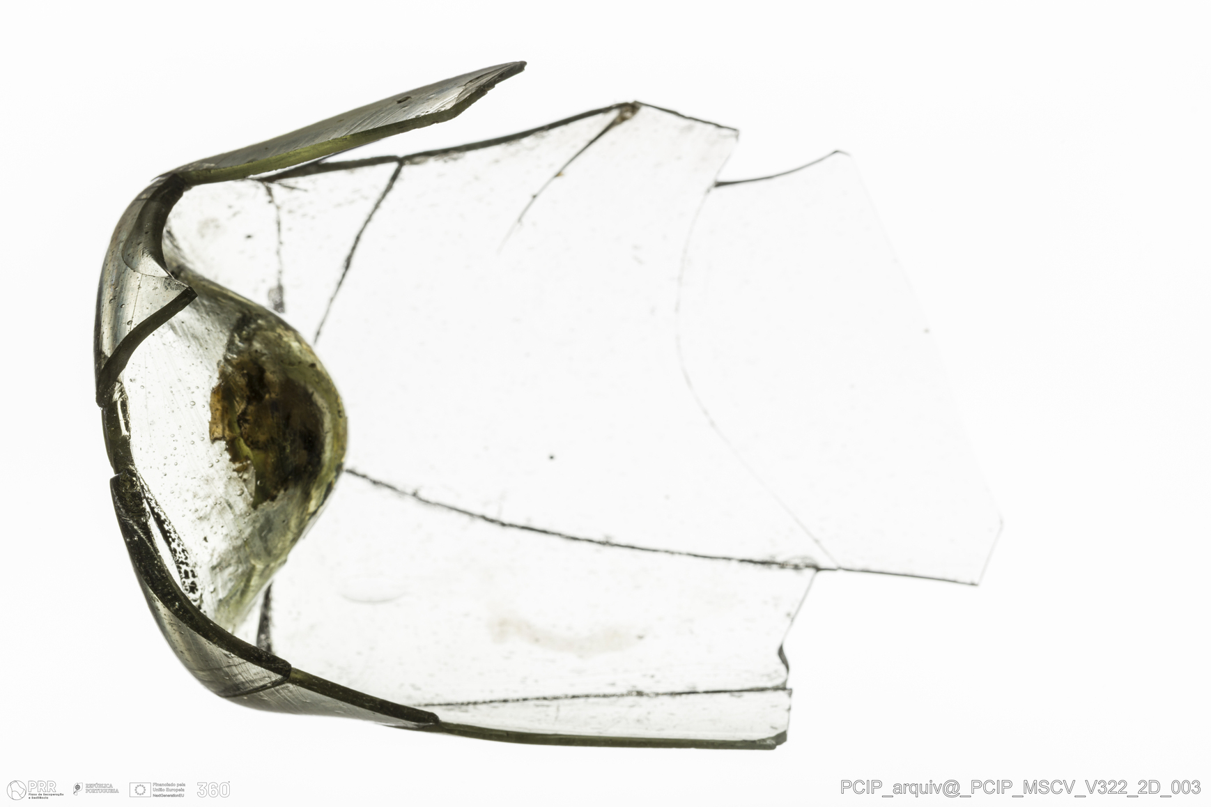 Matéria/Técnica: Vidro; Cronologia: Século XVII; Autoria: Desconhecida; Dimensões: Diâmetro base: 40mm.