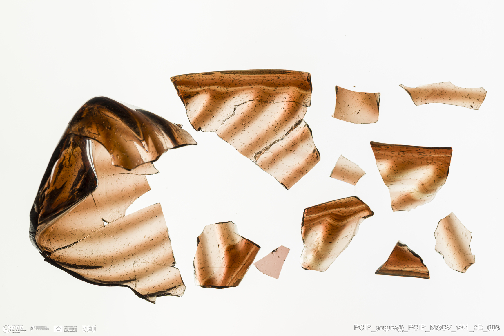 Matéria/Técnica: Vidro; Cronologia: Século XVII; Autoria: Desconhecida; Dimensões: Diâmetro bordo: 50mm; Diâmetro base: 42mm; Altura: 66mm.