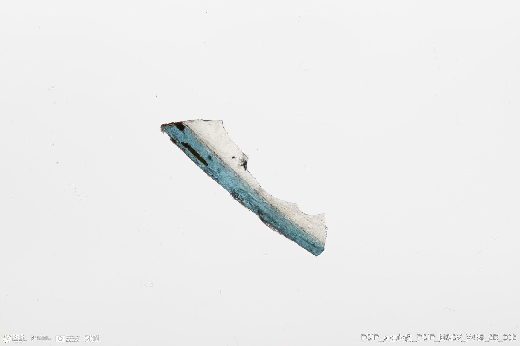 Matéria/Técnica: Vidro; Cronologia: Século XVII; Autoria: Desconhecida; Dimensões: Largura: 22mm; Altura: 9mm.