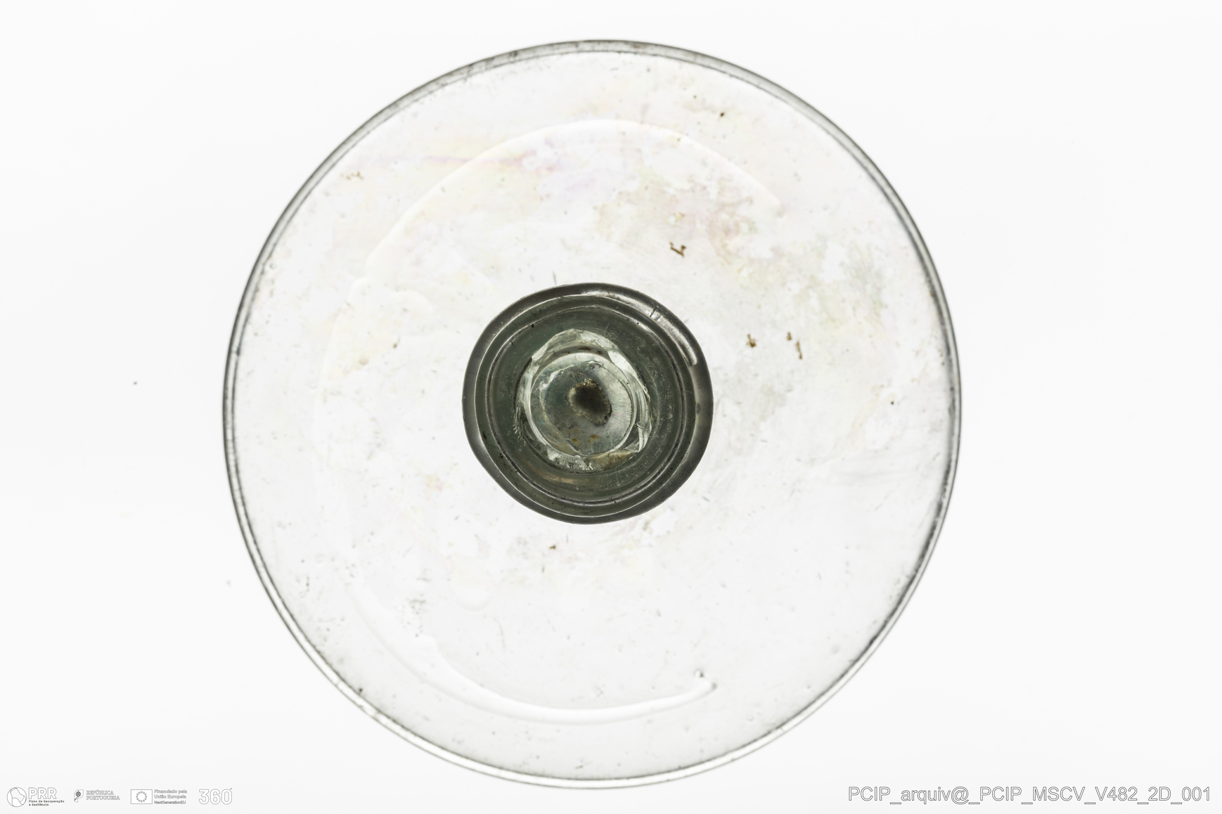 Matéria/Técnica: Vidro; Cronologia: Século XVII; Autoria: Desconhecida; Dimensões: Diâmetro Base: 76mm.