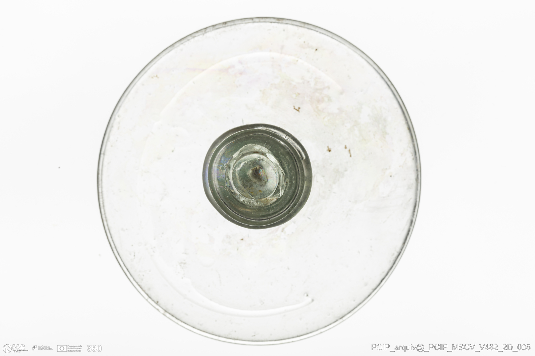 Matéria/Técnica: Vidro; Cronologia: Século XVII; Autoria: Desconhecida; Dimensões: Diâmetro Base: 76mm.