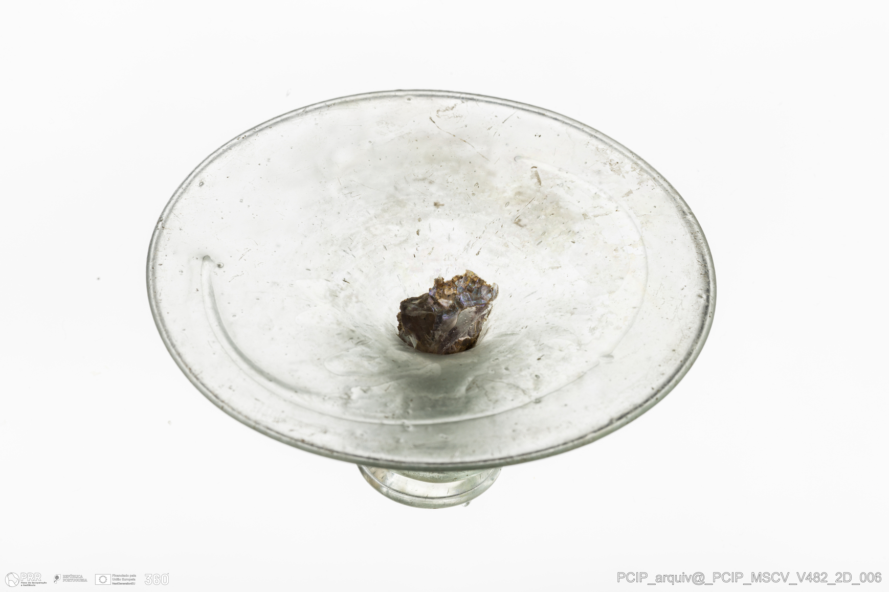 Matéria/Técnica: Vidro; Cronologia: Século XVII; Autoria: Desconhecida; Dimensões: Diâmetro Base: 76mm.